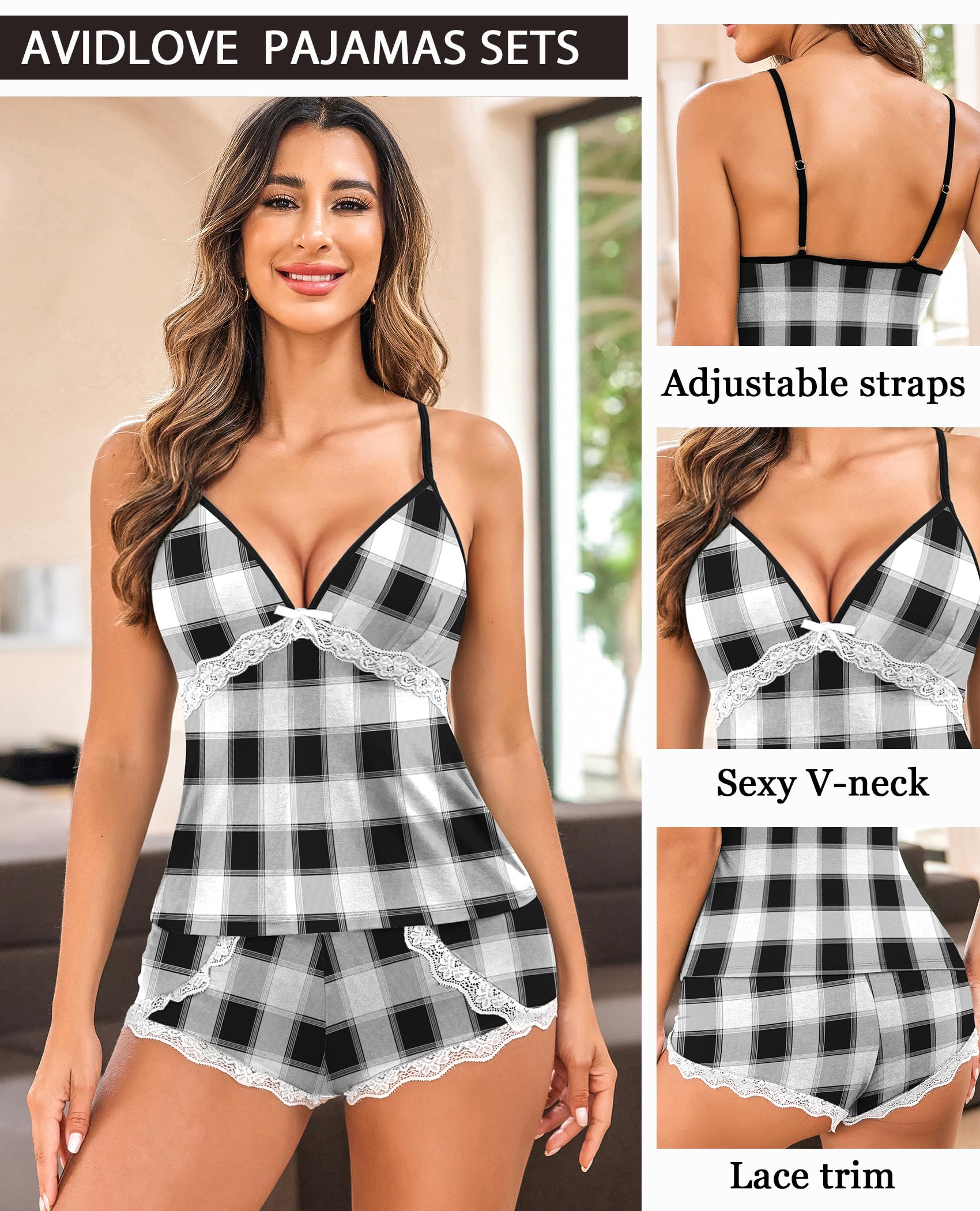 【Cami Pajamas Set】: Sexy pajamas for women with shorts is designed with v neck and with bow decoration ,adjustable spaghetti strap for easy wearing and adjustment to the comfort position you want, make you comfort, sexy in the night.