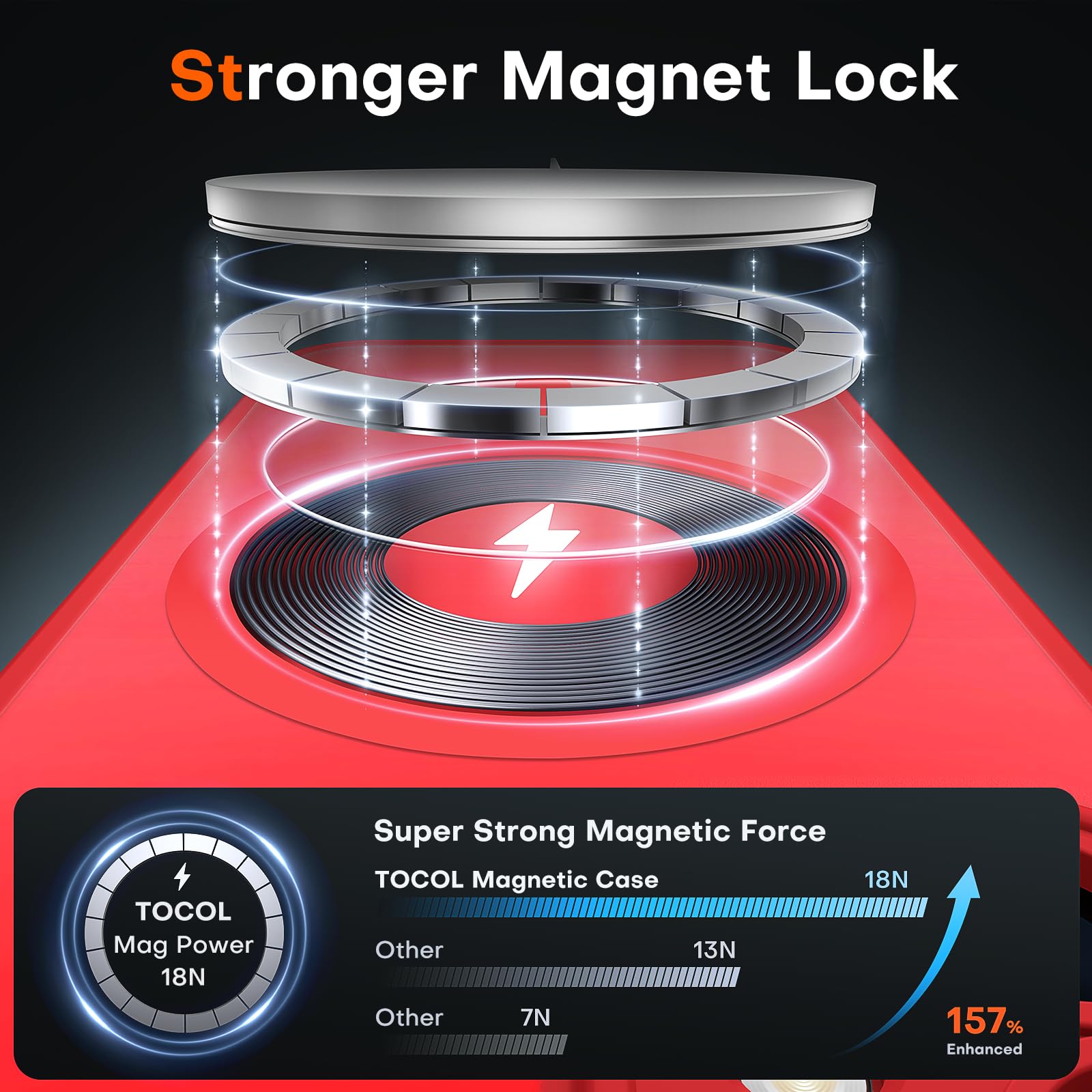 Embedded Magnetic Ring: Upgraded for iPhone 12 magnetic Case. Built-in magnetic ring never falls off. 18N ultra-strong power, perfect for all your Mag accessories. It holds up well on your Mag car mount, even over strong bumps