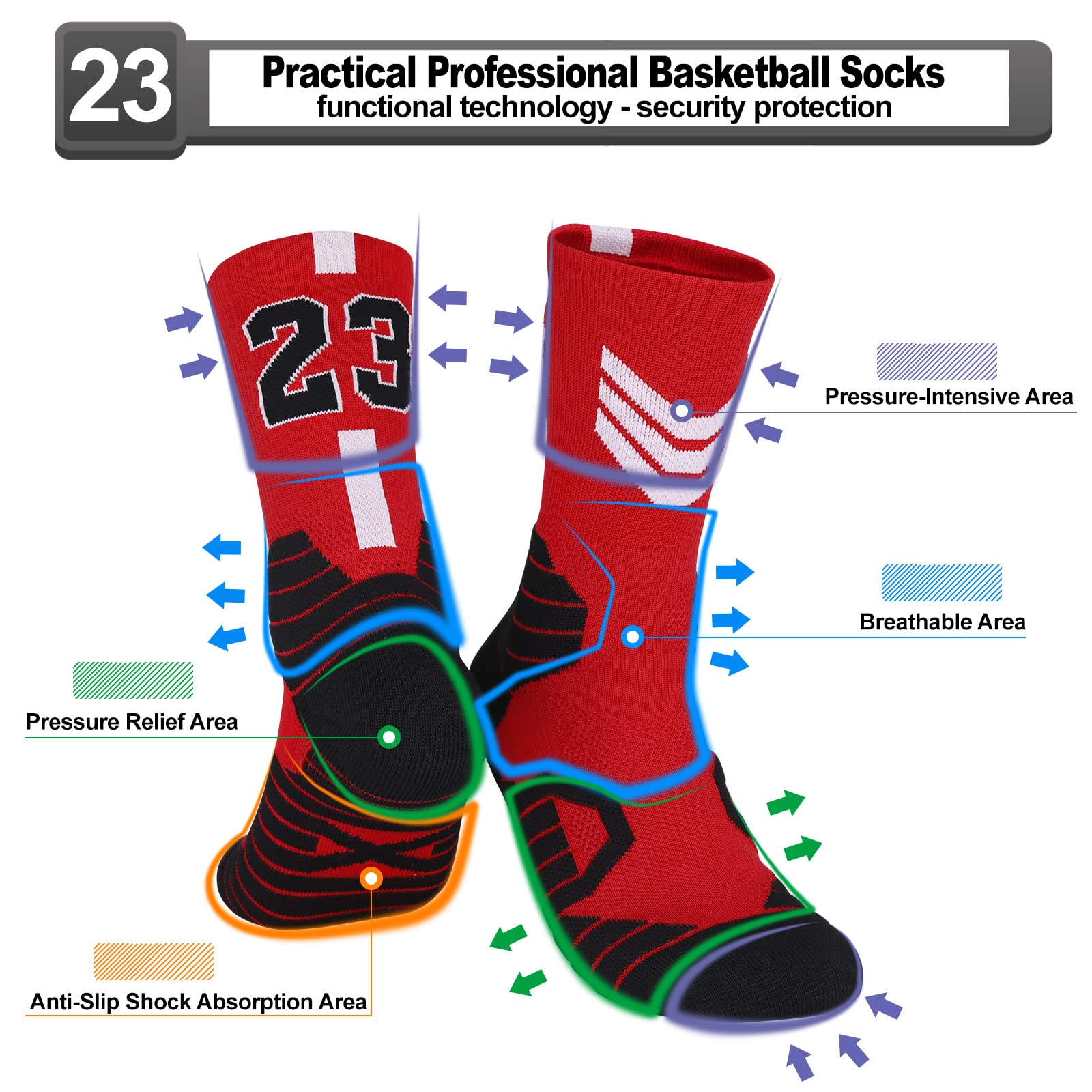 🏀 Absolutely Support - Our elite socks have reinforced structures on the ankle and foot areas. The thickened bottom will provide added shock absorption during hard landings. The right fit will give you the right level of support needed when you run up and down the court. This will also give you extra confidence when you jump to grab that rebound.