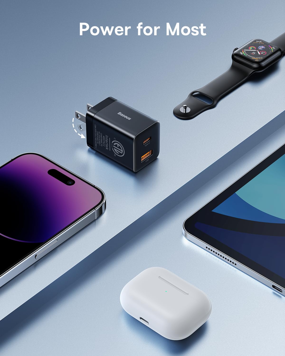 What's in the Box: Baseus 30W USB-C power adapter, User Guide, our worry-free 12-month warranty, and friendly customer service (cable not included).