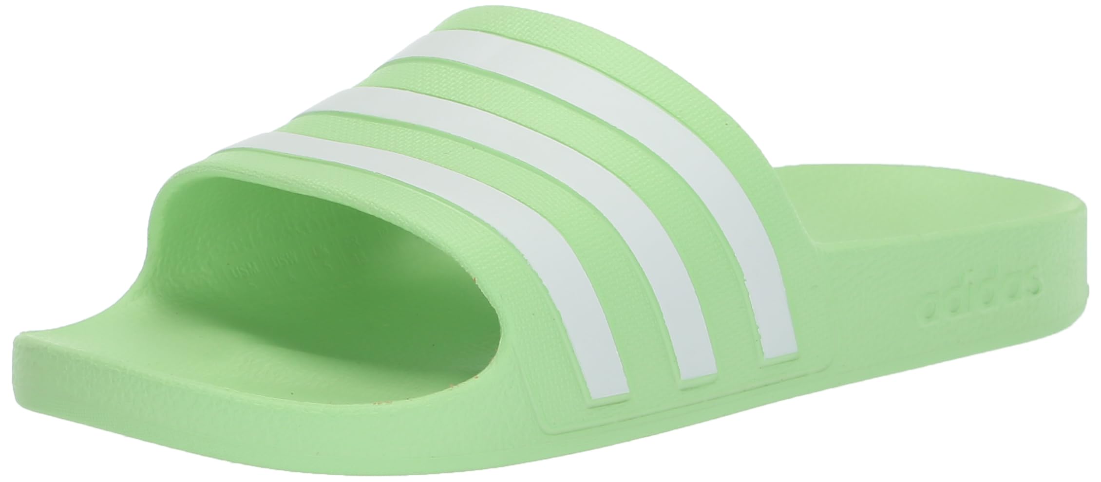 Description These Adilette Aqua Slides bring welcome comfort to tired feet. They have a one-piece molded EVA upper and a plush Cloudfoam footbed. Hit the shower in adidas 3-Stripes.