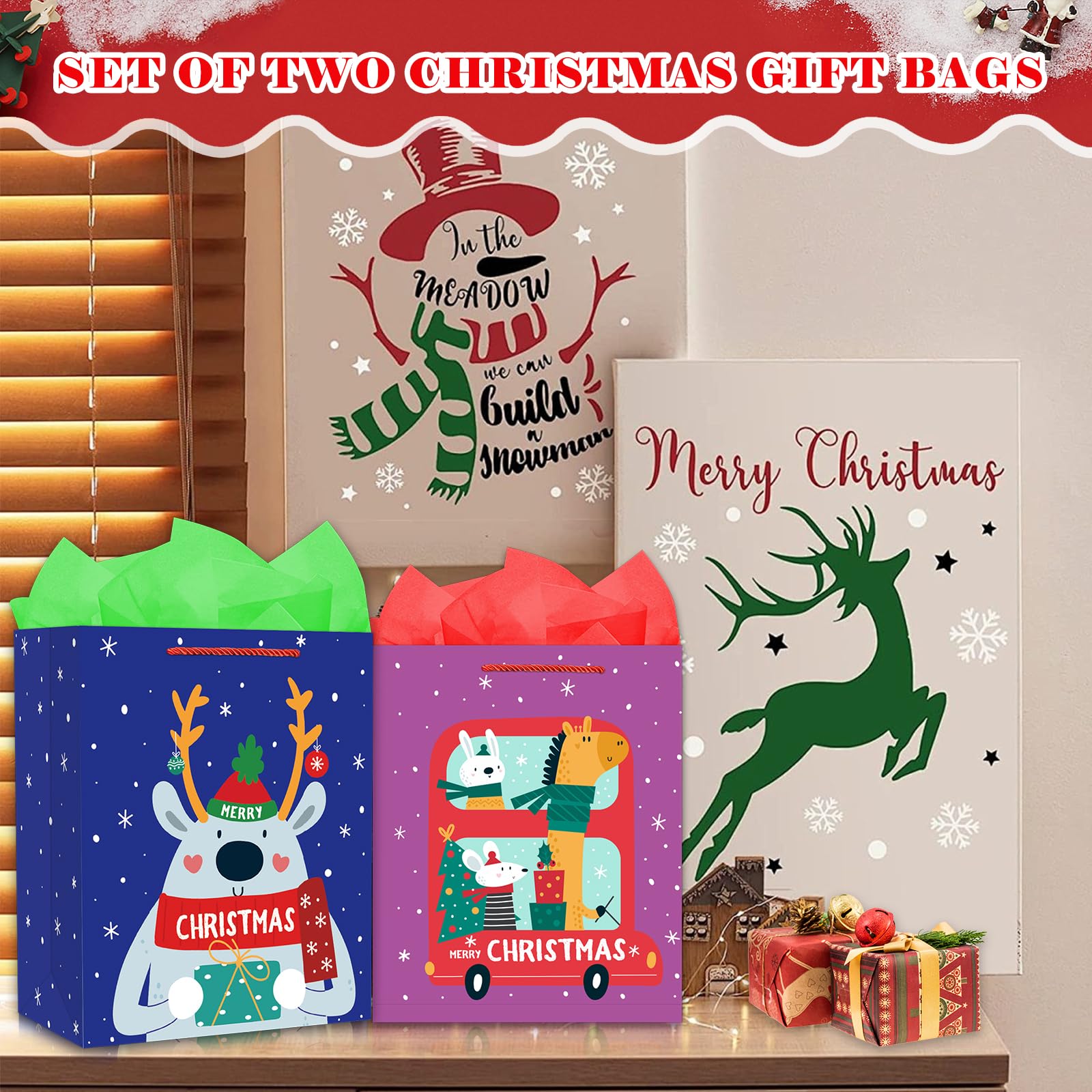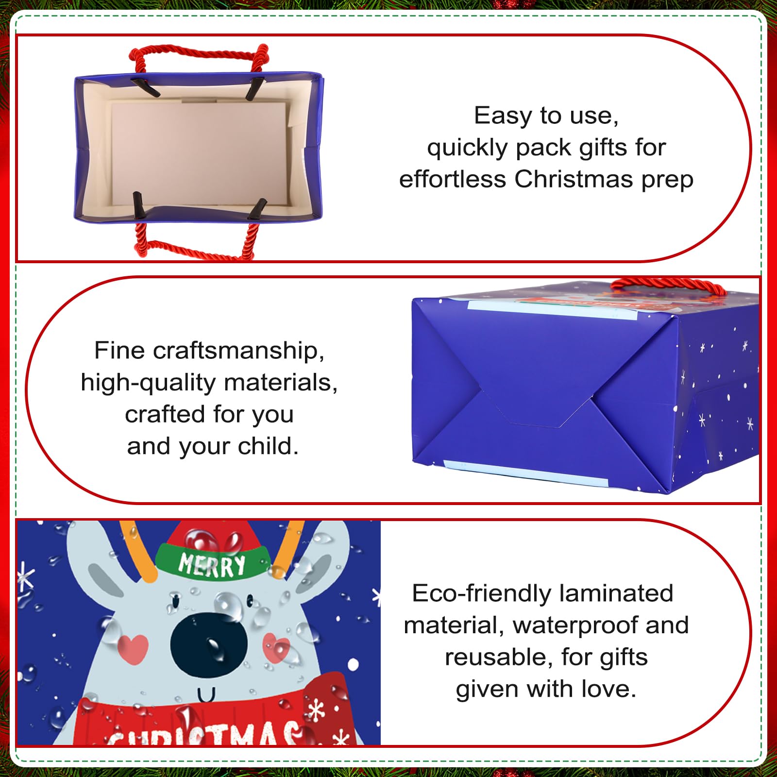 【Versatile Usage】: Ideal for more than just Christmas, our gift bag can be used for various occasions. Its robust design makes it great for storing and transporting gifts, treats, or even as a decorative element.