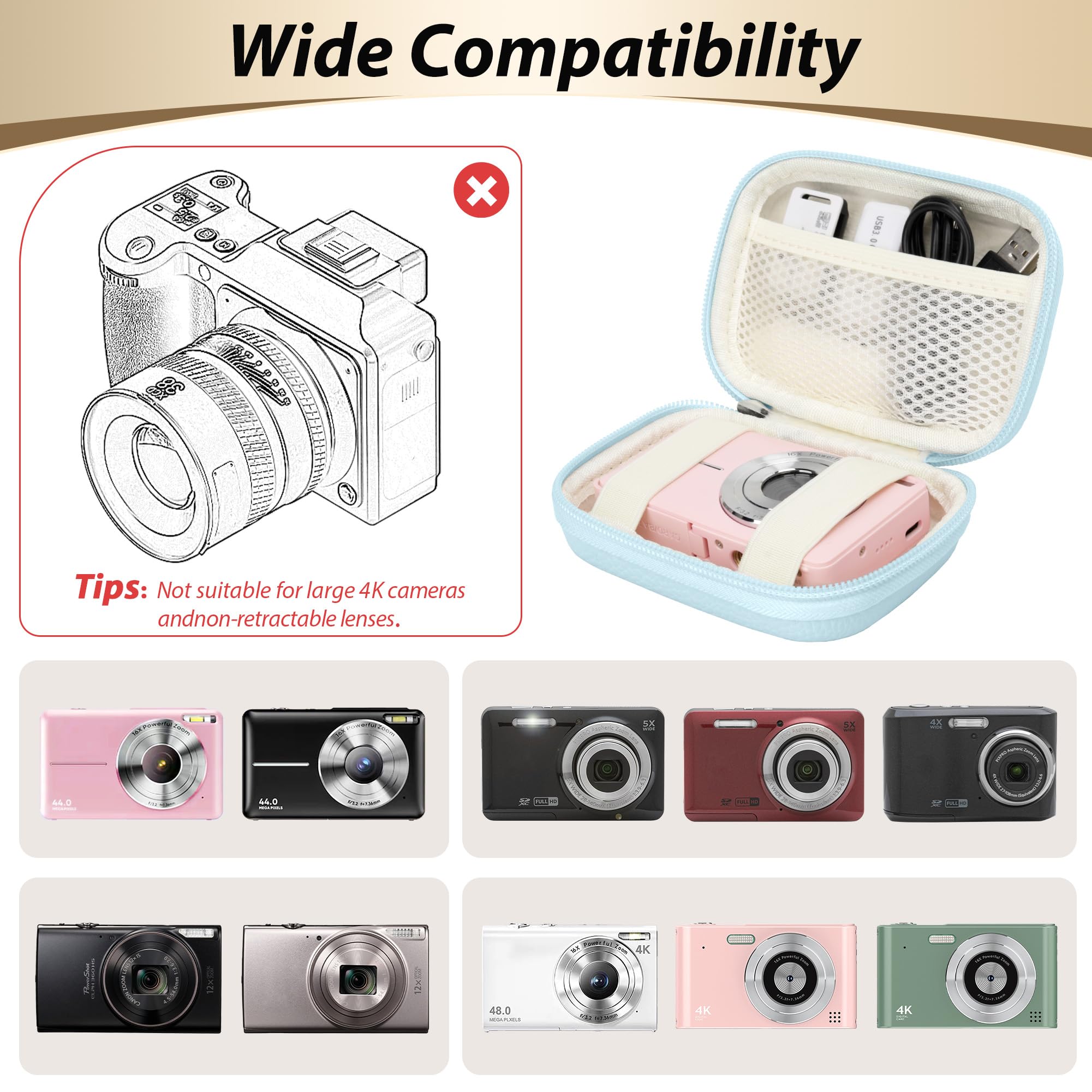 Excellent Protection: The digital camera case features a rugged EVA shell for waterproof, shockproof, and pressure-resistant protection. Its velvet-lined interior prevents scratches, keeping your kodak pixpro fz45 or other compact cameras safe alongside digital camera accessories