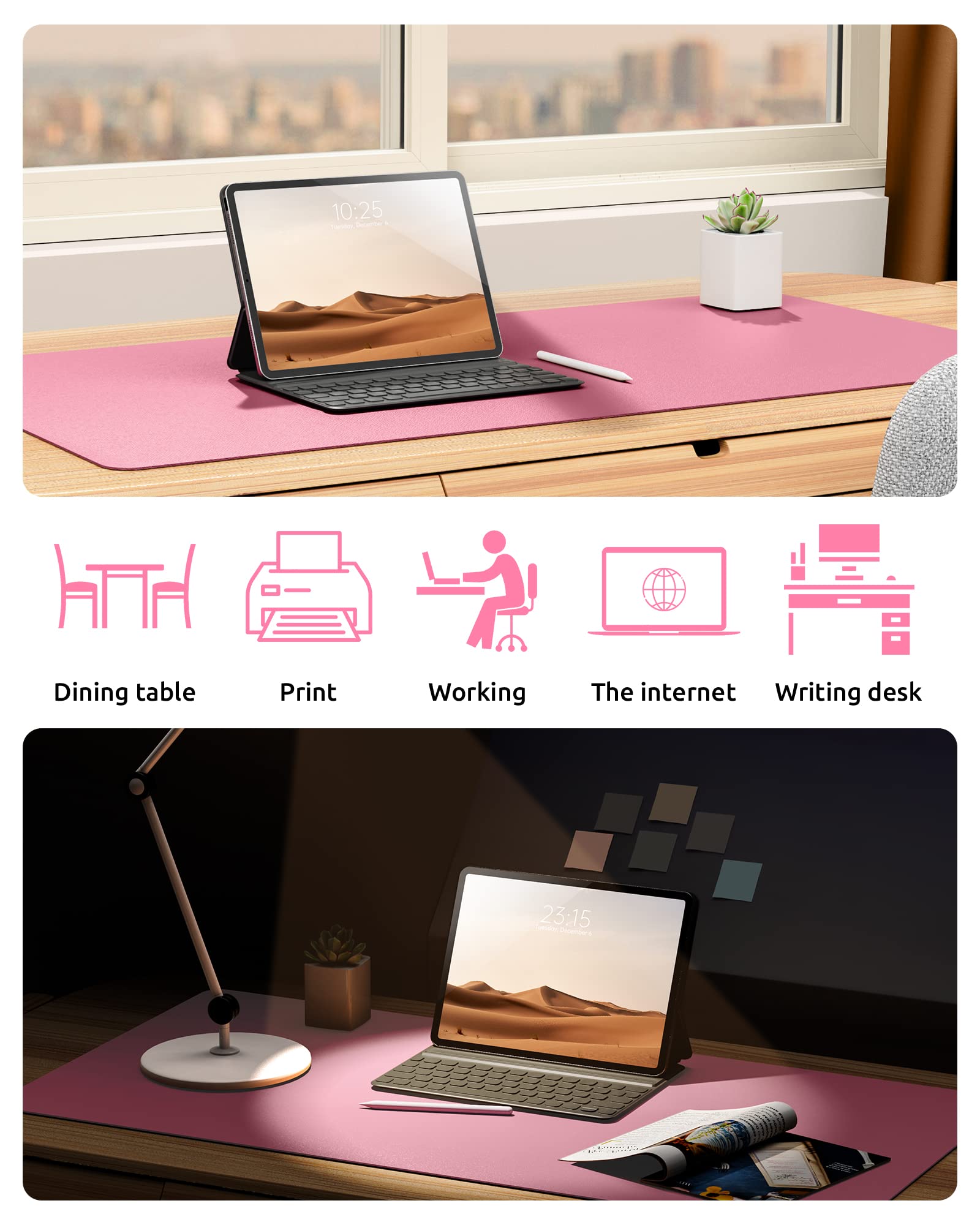 LARGE MOUSE PAD: With our large desk pad, say goodbye to small extra mouse pad. Make your desk top looks tiny and professional. With special suede design for back side,increase friction resistance with the desktop, Non slip. The friction resistance is increased by 70% than that of double-sided leather.