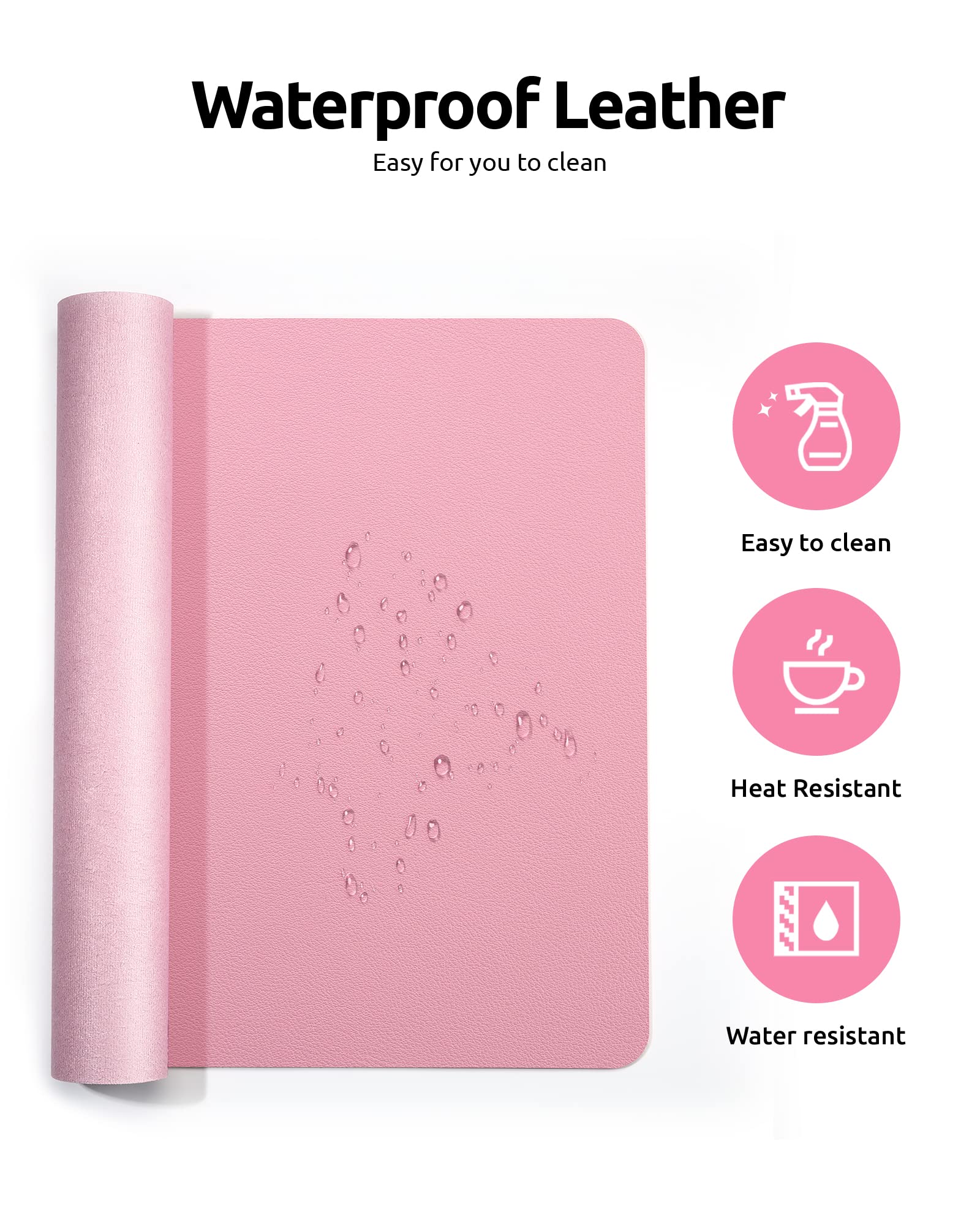 EASY TO CLEAN: Waterproof leather desk pad. Just use cloth for basic clean: liquid, dust, grease and dirt. Wet cloth would be prefer if there are too much dirt in the desk mat.