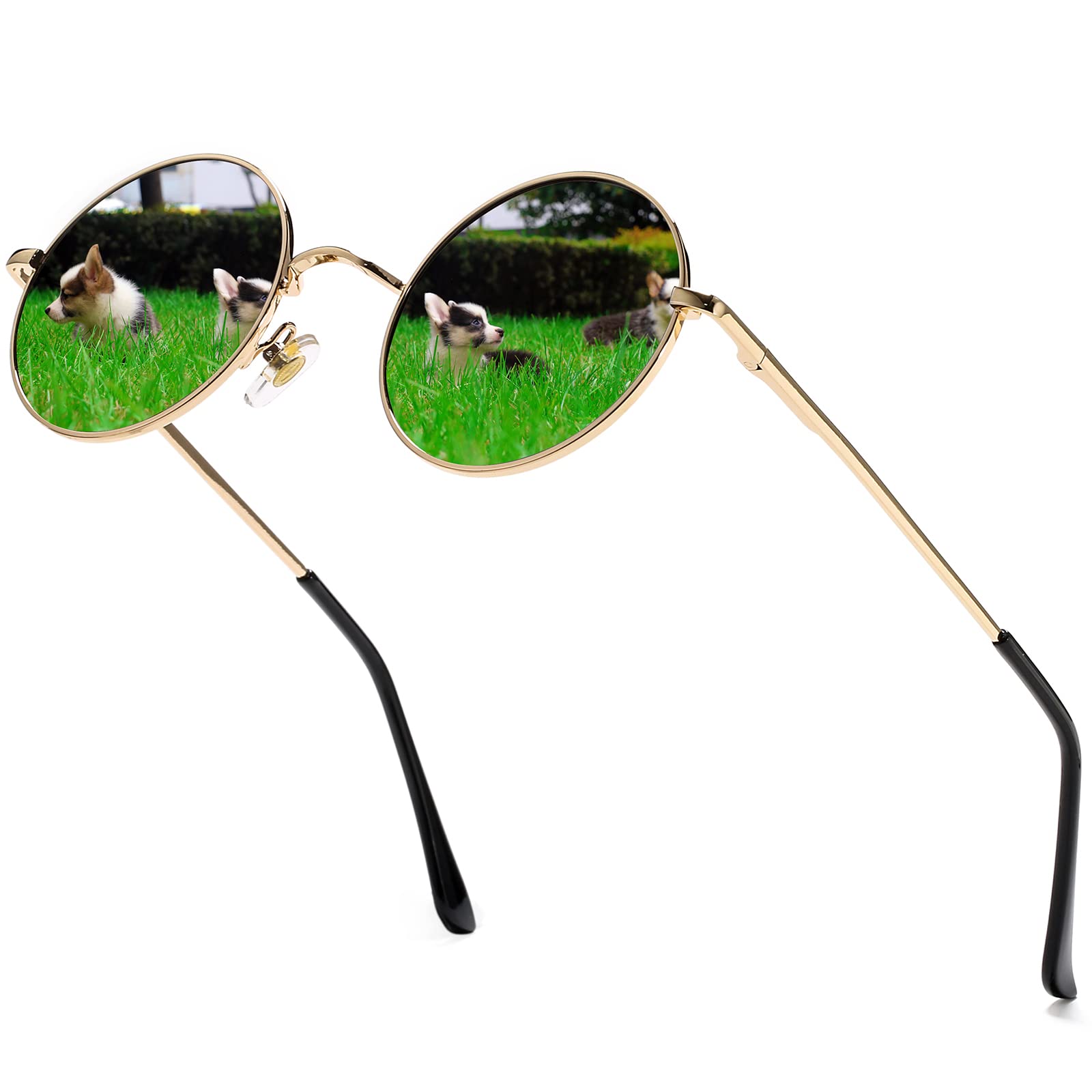 VINTAGE ROUND METAL FRAME ►Ergonomic design frame, a curved brow bar, reinforced metal hinge, adjustable nose pads, durable metal flexible spring hinges temples, classic design make these small round sunglasses for men and women more comfortable and durable while you are wearing.