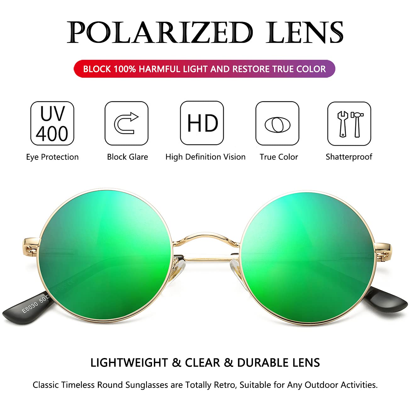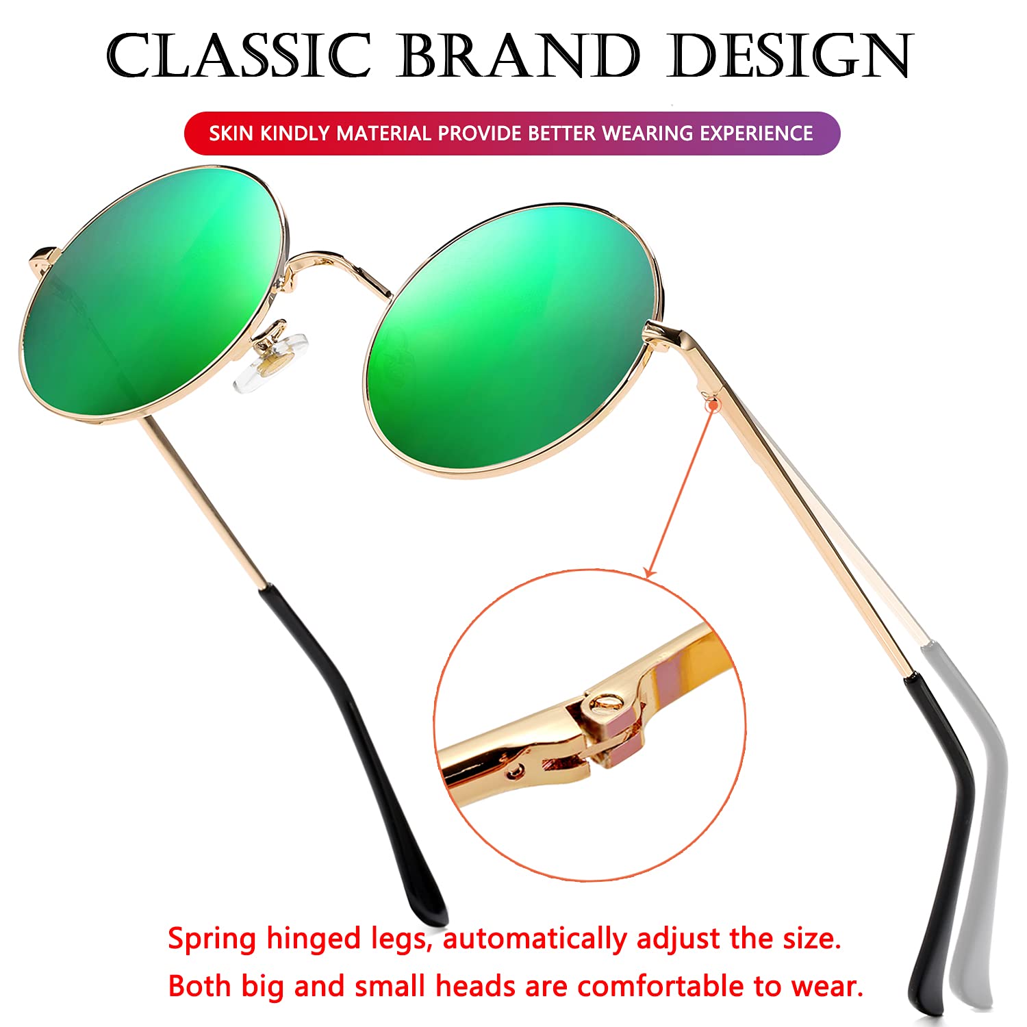 RETRO BRAND DESIGN ►Retro round polarized sunglasses; personalize your style from a variety of frame colors and lens treatments including ocean red, brown and silver mirror. Created exciting and unique looks, give these sunglasses ultimate comfort alongside pristine fashion that will make your style ageless.
