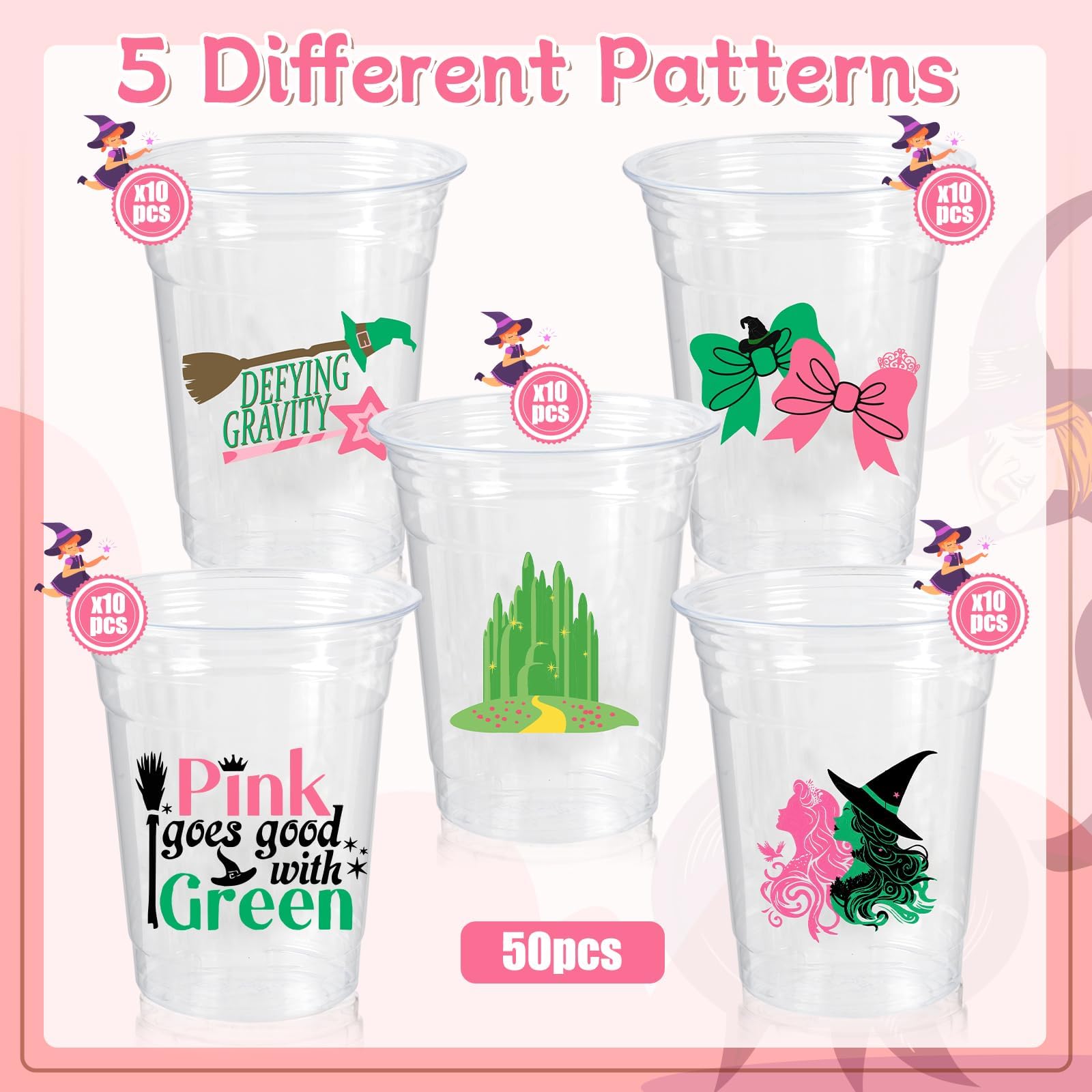 Witch Theme Party Decoration Plastic Cups, 50pcs 12 Oz Plastic Clear Disposable Drinking Cups for Witch Movie Birthday Wedding Summer Tropical Shower Party Supplies Favors Women Men Snack Cup Bulk
