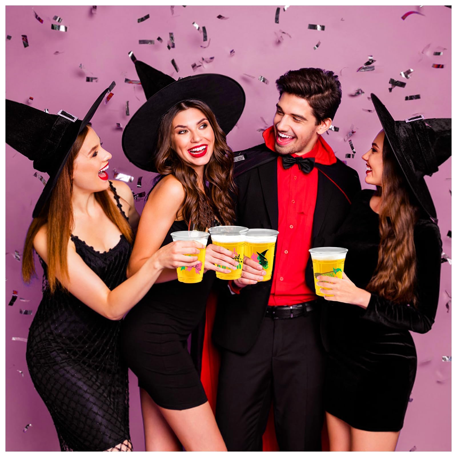 Perfect Dimensions: Each clear cups for party features a 3.4-inch rim diameter, 2.2-inch base diameter, and stands 4.2 inches tall with a 12-oz capacity. These witch themed water cups disposable are perfect for sodas, juices, cocktails, beer, and other cold beverages