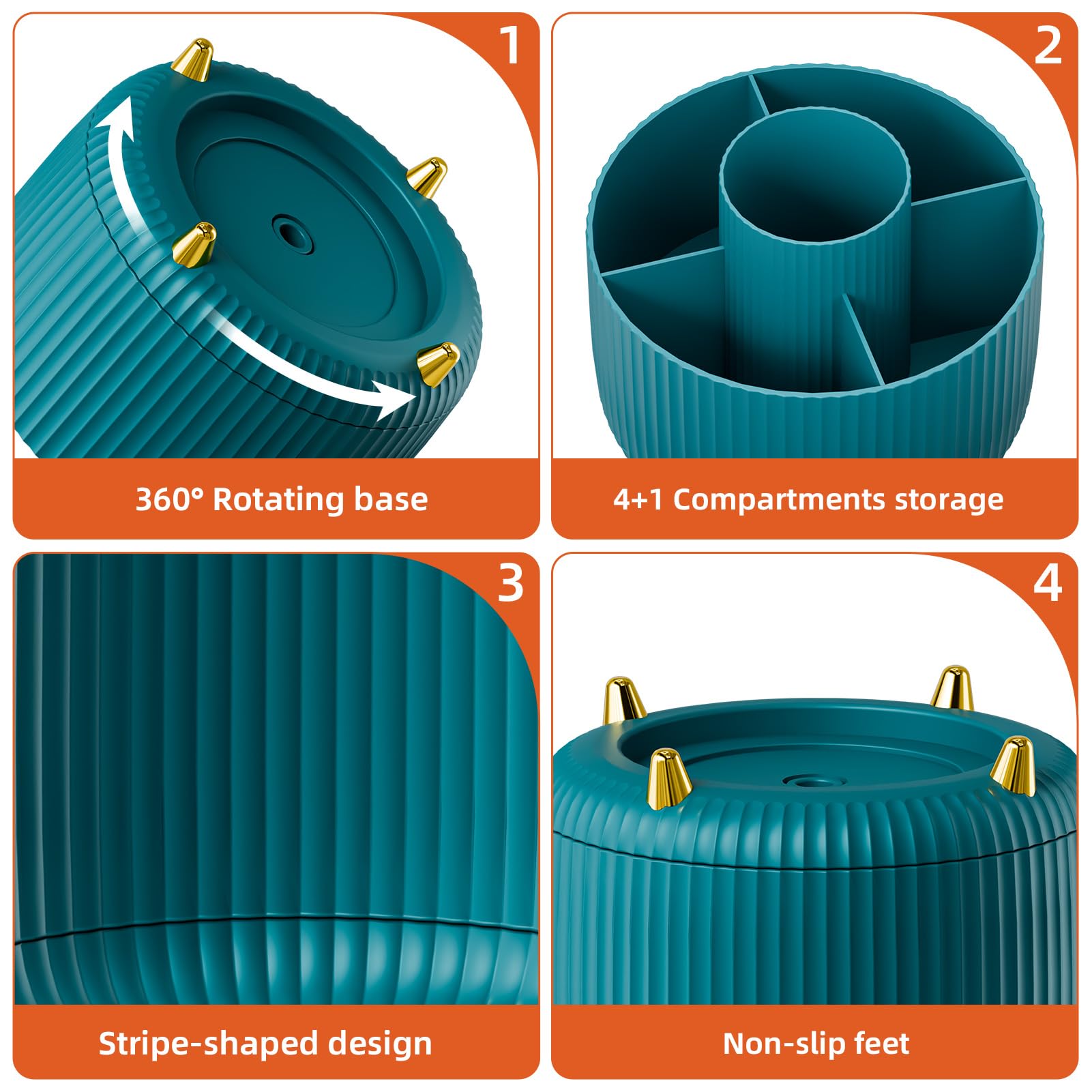【Smart 360 Degree Revolving Design】: This desktop organizer can be turned up to 360-degree rotation to the left and right. This storage caddy allows you to keep all of your small items within reach while staying out of your way. You can always get what you want quickly and easily. The product can be bilaterally and smoothly rotated, just turn as you please