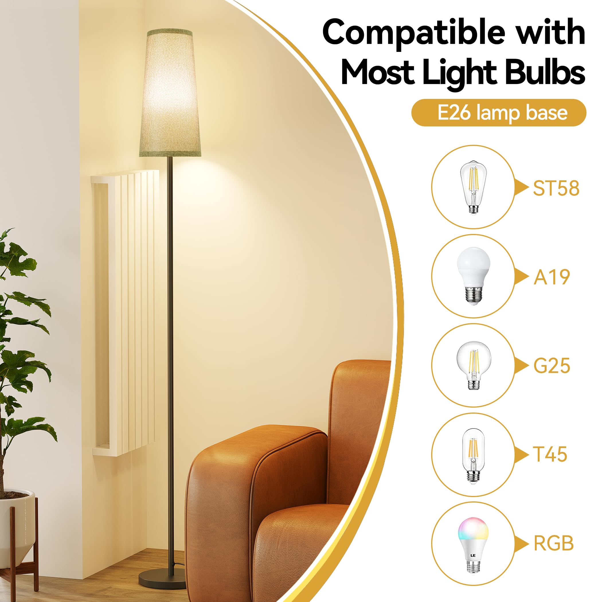 Dimmable LED Bulb Included: The floor lamp comes with a dimmable LED bulb that allows for smooth adjustment of both brightness and color temperature, giving you complete control over your lighting. Effortlessly switch between warm light and cool light.