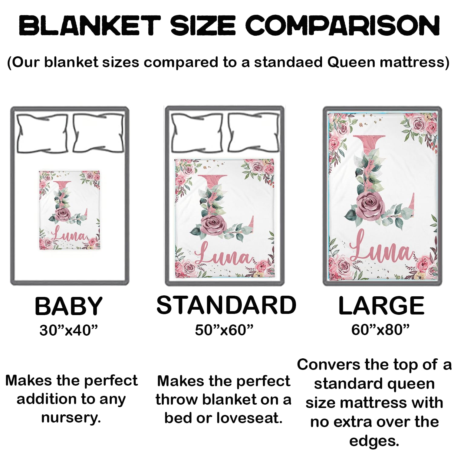 Are you looking for a blanket that can keep good memories? This carefully prepared customized blanket with memories is a perfect gift for adults, children, family, friends, pets, mothers, fathers, boyfriends, girlfriends, daughters, sons, grandmothers, grandfathers, wives, husbands, sisters and partners Note: 1. This blanket is printed on one side, and the unprinted side is white; 2. If necessary, we will help you adjust your name to achieve the best results. In order to make the goods reach you faster, when we receive your order, we will immediately arrange production。 If there is any problem with your order, please let us know. Thank you for coming! Personalized Custom Gift Blanket You can add the name (text) you need on the blanket and give it to your baby, family, lover, friend or pet or keep it for yourself. This is a very meaningful gift, we have designed it for you with the fonts and colors you need, it looks great Personalized Gift - newborn gift - birthday gift - kids gift - holiday gift Soft and Light Name Blanket Perfect for babies, adults or pets, this soft and lightweight custom blanket will keep you warm anytime. Can be used as a baby swaddle blanket, crib blanket or baby crawling blanket, can also be your sleeping blanket, sofa blanket, travel blanket, cute prints will not affect the softness of the blanket