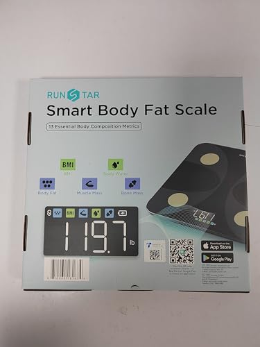 6 Data Readings and Large LCD Display: Instead of normal LCD display scales, the Runstar scale features a large display screen that shows 6 key measurements, including weight, body fat rate, BMI, muscle mass, body water rate and bone mass. You can completely free your hands to read these measurements at a glance without having to open your APP for every measurements