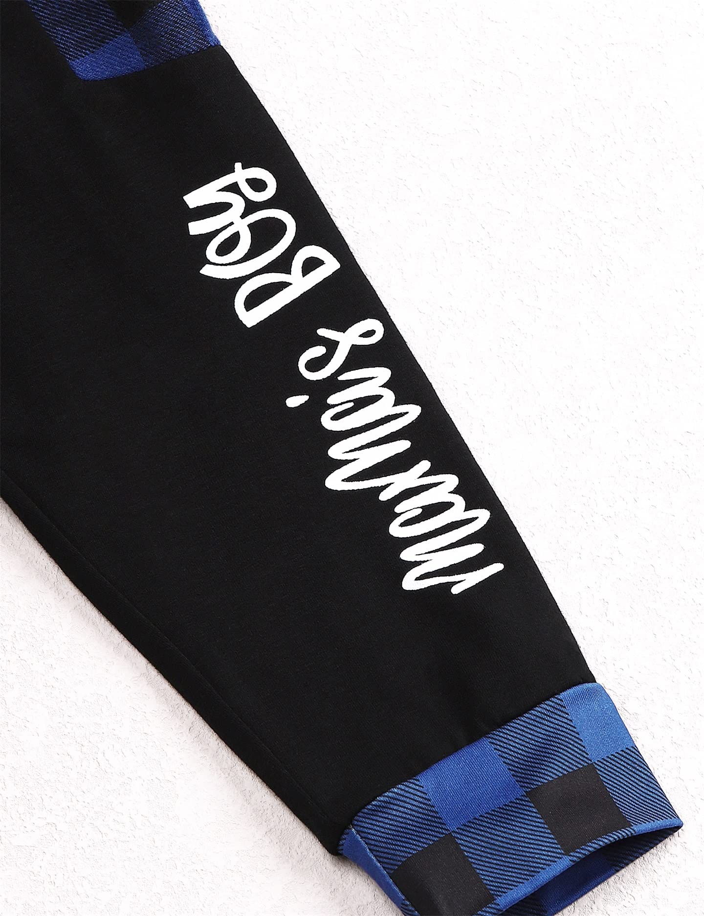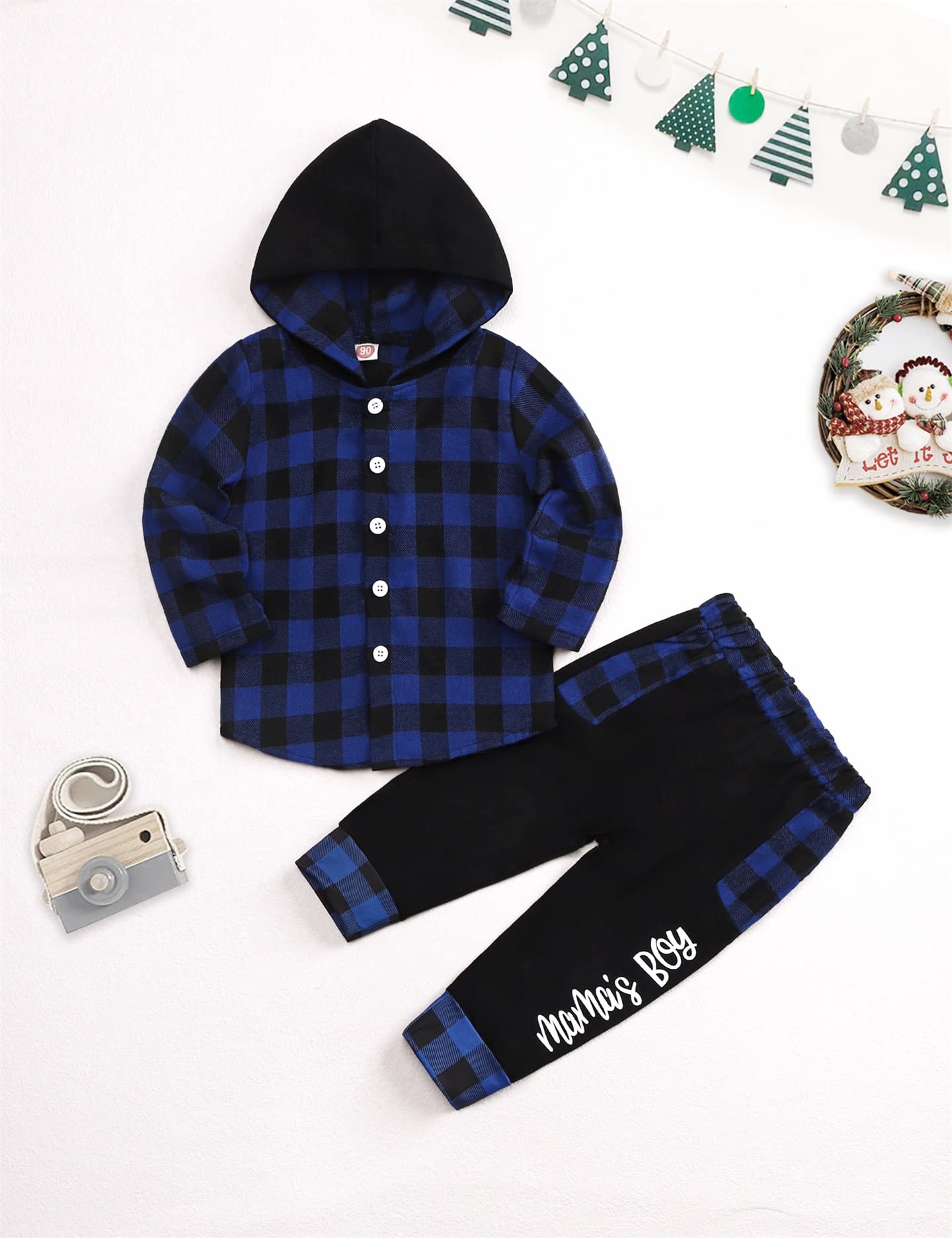 Cute & Stylish Design: Toddler Baby boy clothes set with layer of fleece on the inside, Classical plaid colorblock hoodie with special button design, elastic waistband plaid pants match with letter printed , easy to wear.