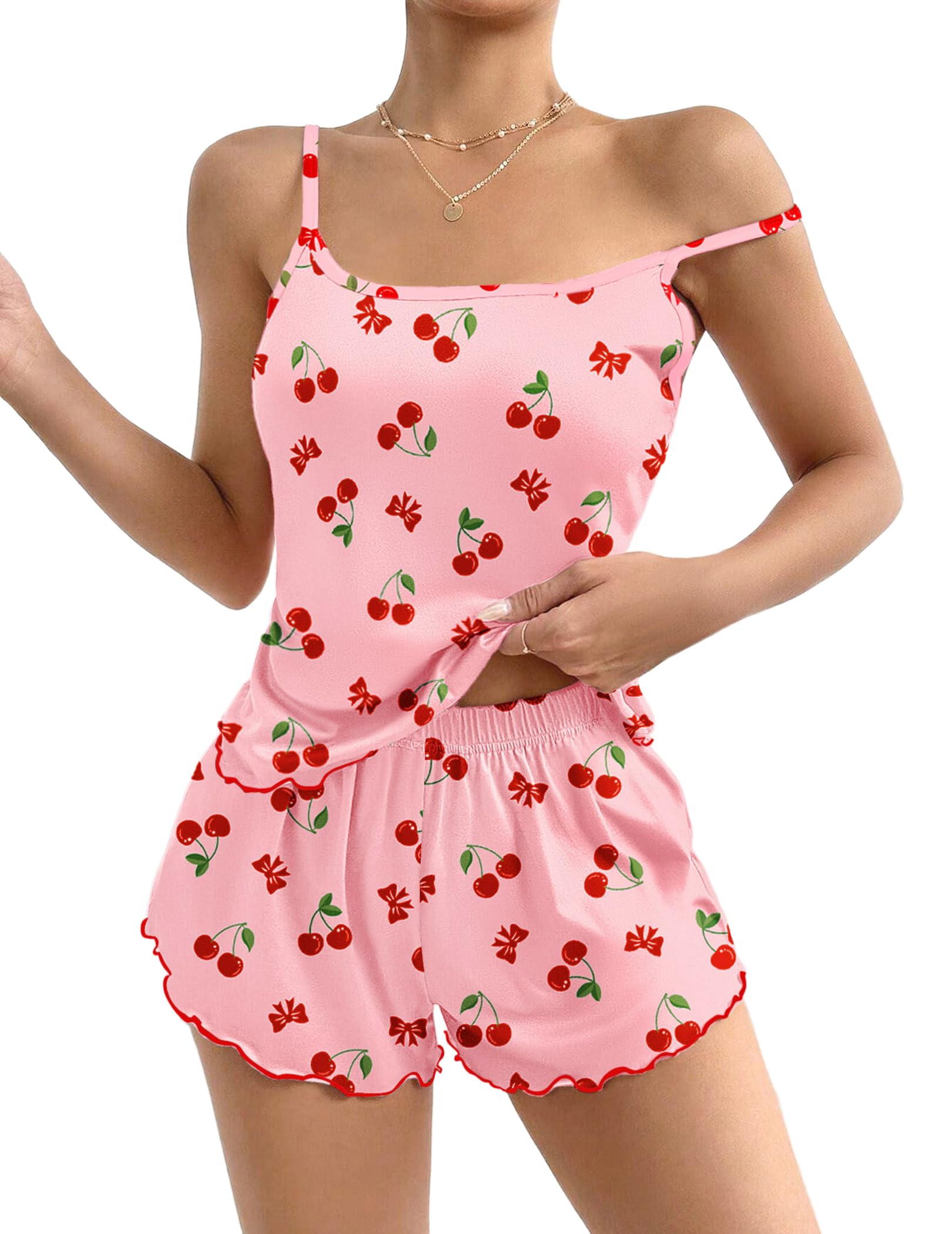 Stylish Spaghetti Strap Design: This set features a trendy spaghetti strap top with a flattering round neckline, perfect for a sexy and feminine look.