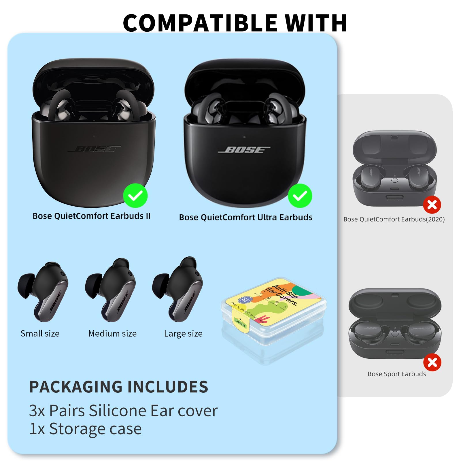 ✿【Package Includes】✿ Package includes: 3 Pairs*silicone eartips cover(S, M, L), NOTE: Bose QuietComfort Ultra Earbuds and charging case not included.
