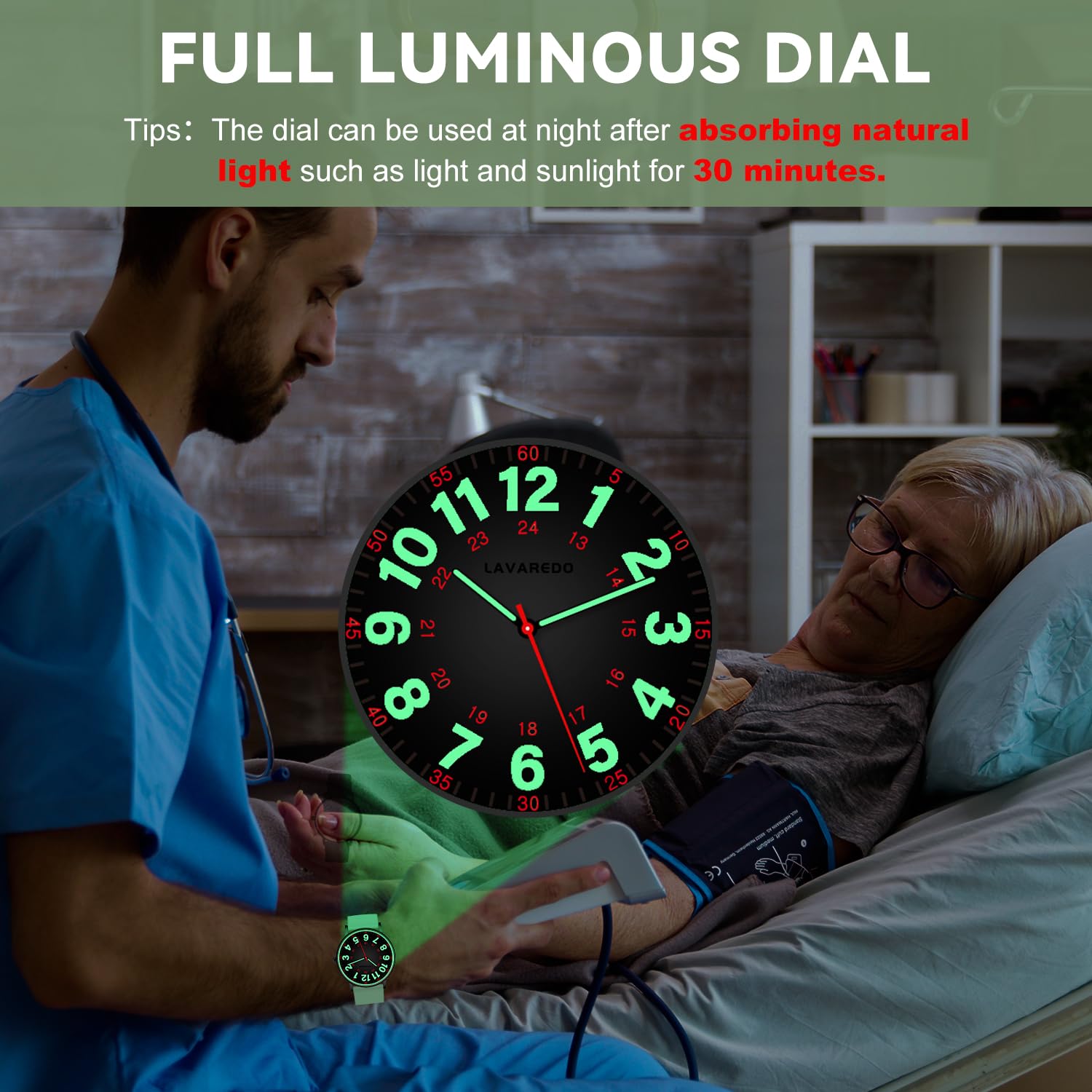 Professional Nurse Watch:The 3 hands analog watch contains high-quality Japanese quartz movement and high-visibility red second hand to accurately read the time and pulse. Simple design is equally suitable for both men and women.
