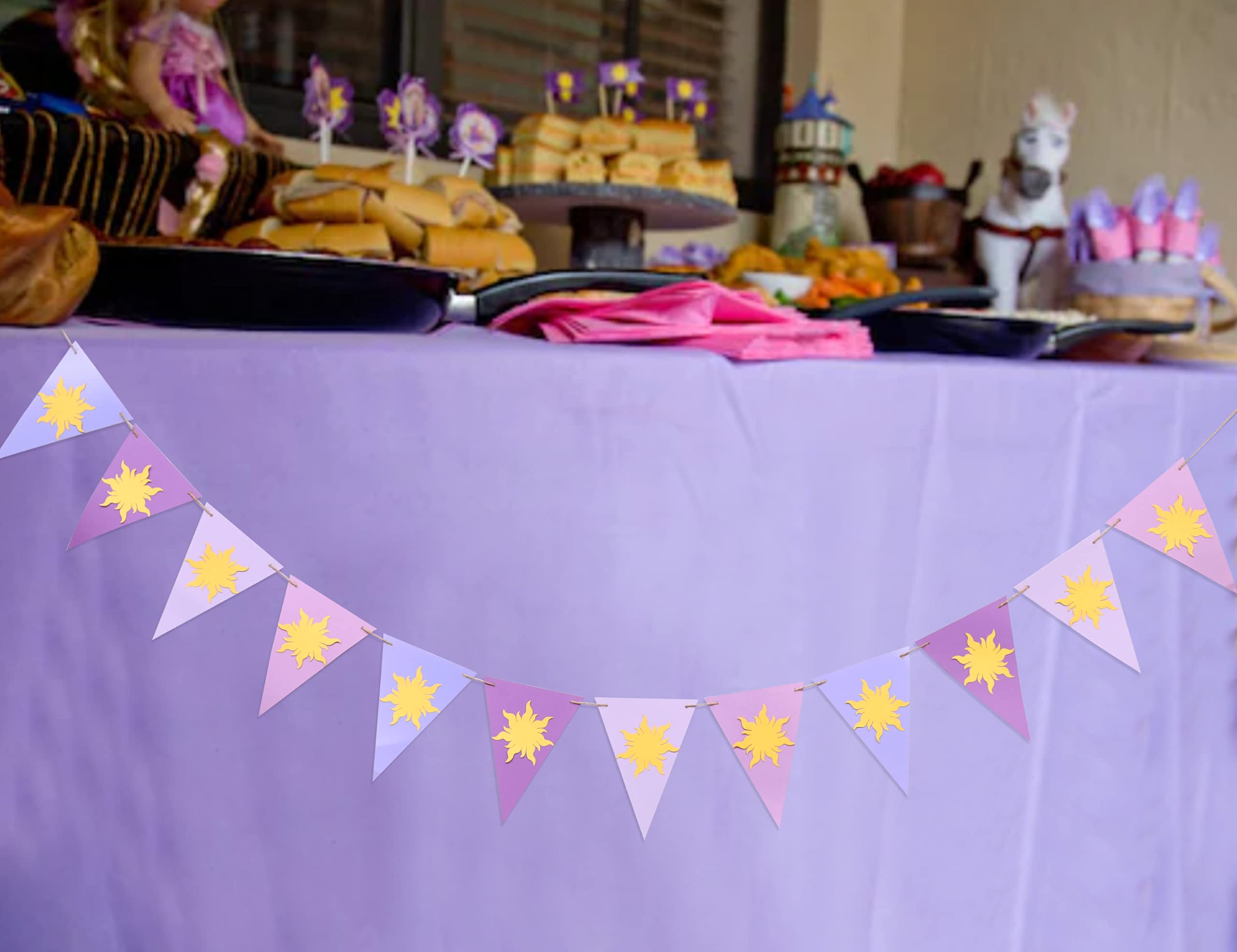 PERFECT PARTY DECORATION - if you are giving your daughter through birthday, i think this purple sun highchair banner is the most suitable, this first birthday banner is very suitable for any purple party theme, when you hold this small party, you the child will be very excited. with this lovely tangled decoration to celebrate her birthday, she will become the focus of this cute birthday party all day.