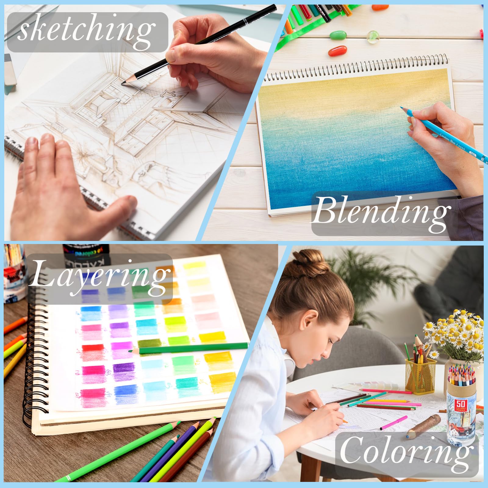Complete Color Pencil Set: Contains 50 premium colored pencils in eco-friendly tube for artists to express creativity and ideas in vibrant and colorful way.