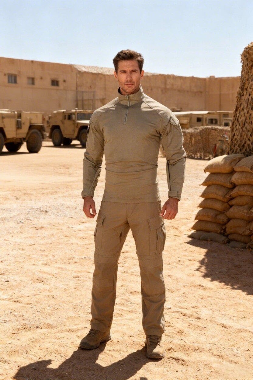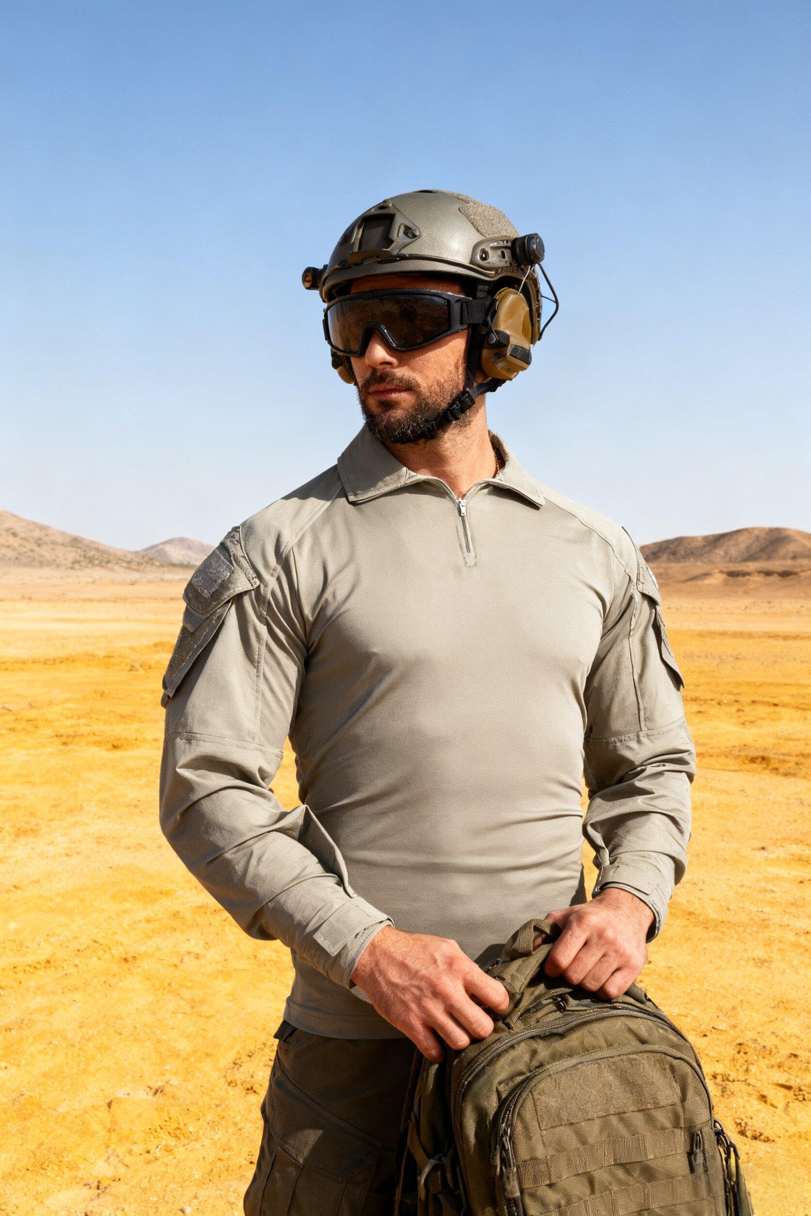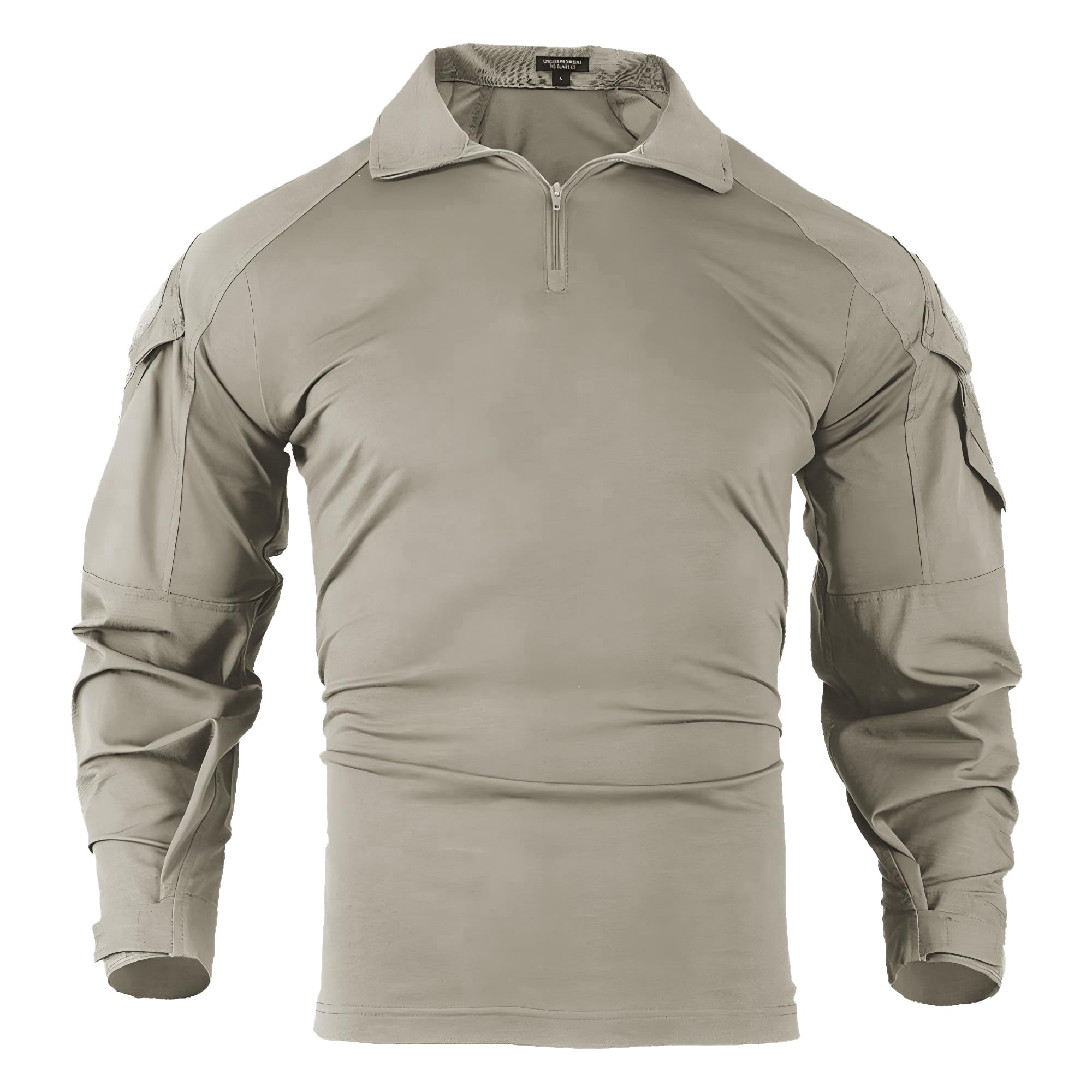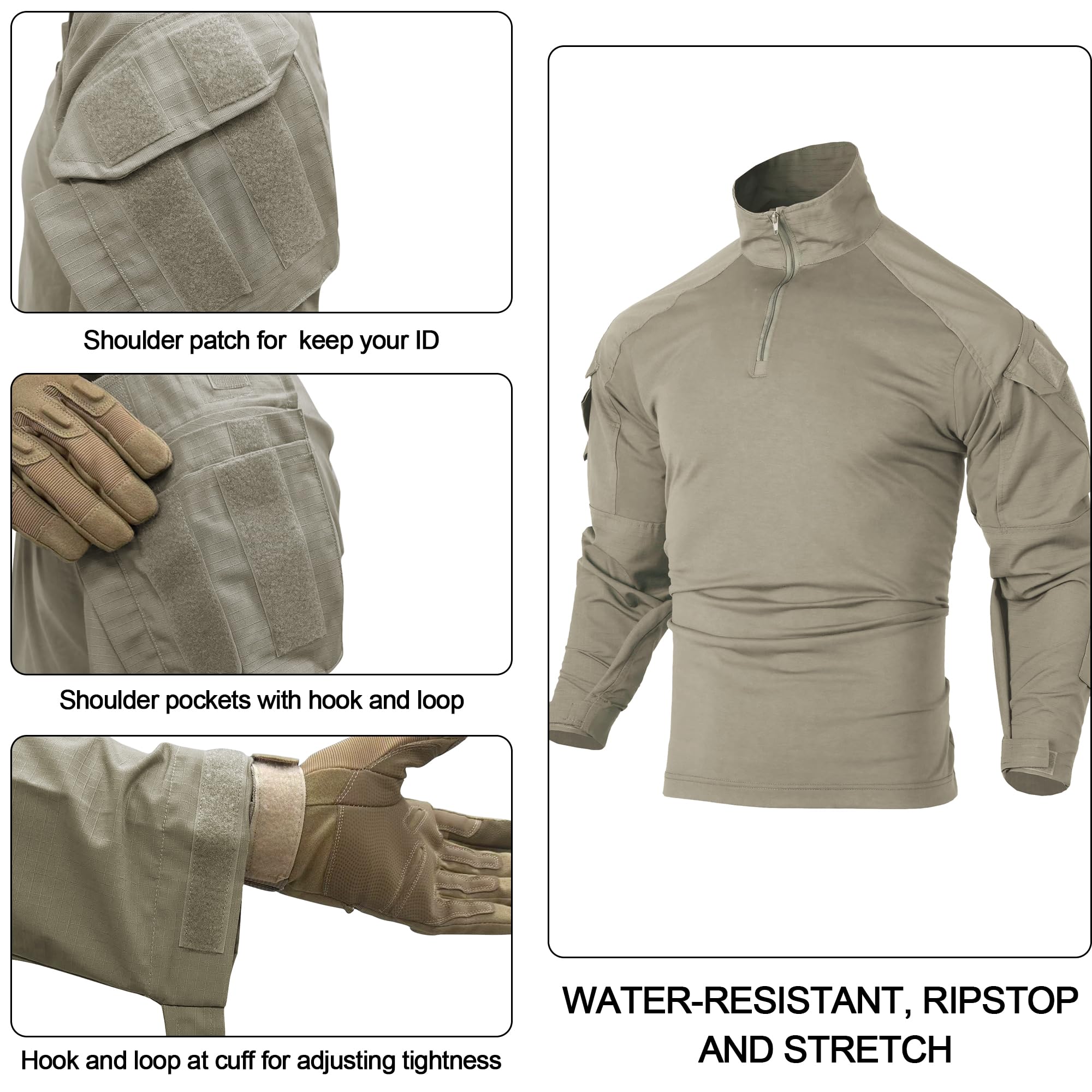 Design of airsoft shirt: The combat shirts for men features with stand-up collar with YCC zipper,underarm three-dimensional cutting design, thickened elbows. The tightness of the cuffs with hook and loop can be adjusted. Standing collar protects the neck and keeps it warm from the natural interference of the cold
