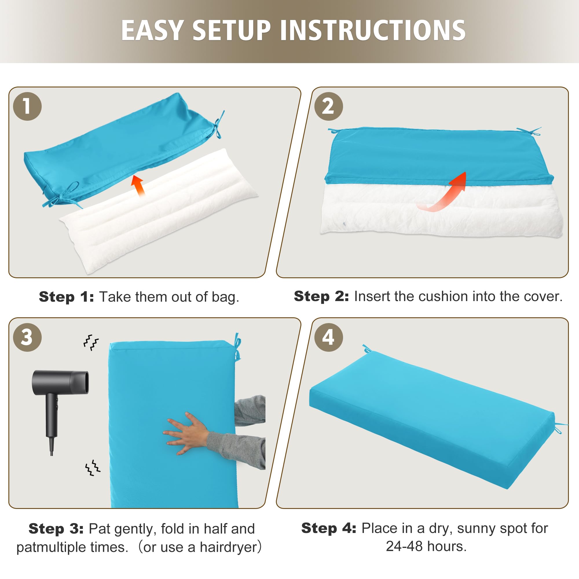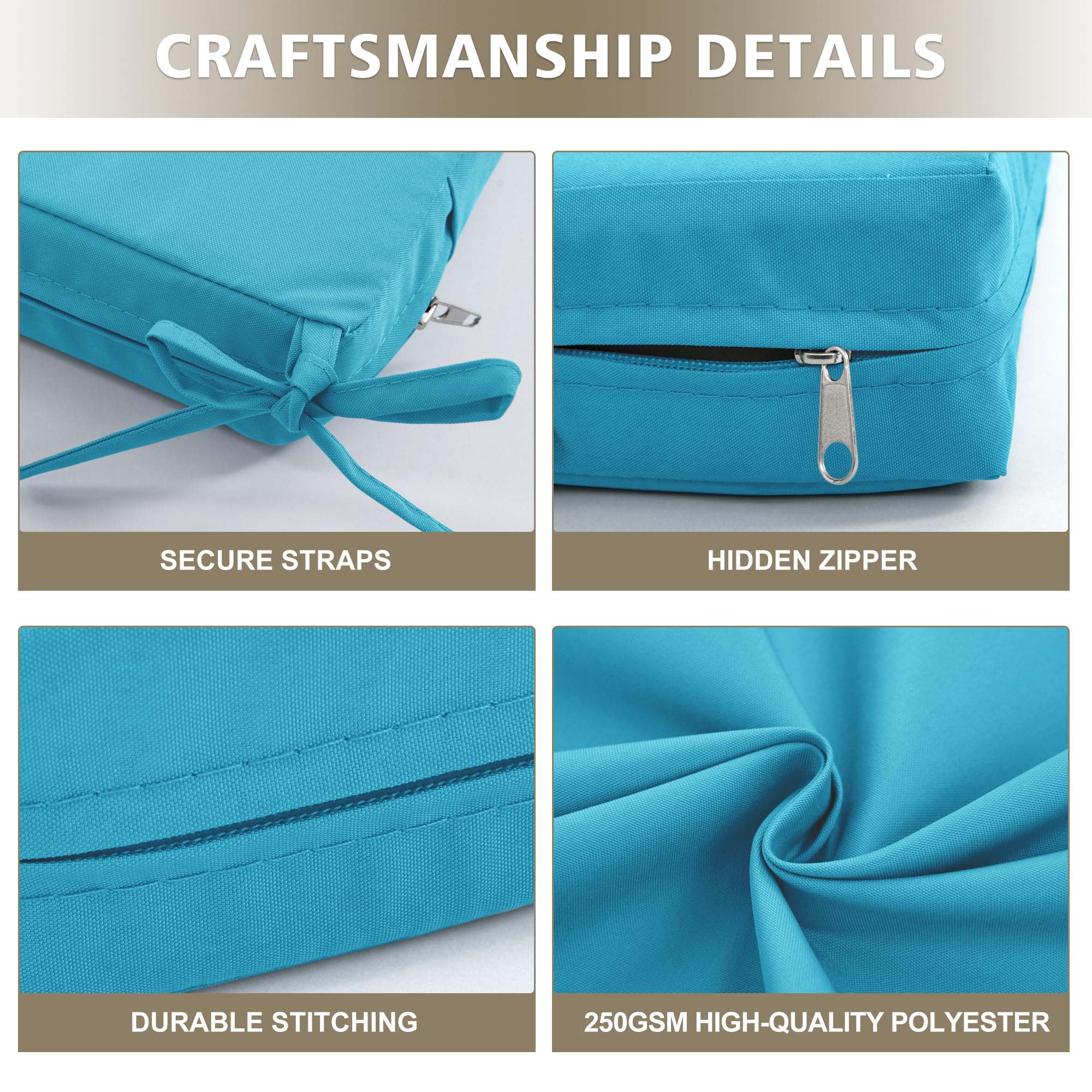 【Secure Fit with Ties】: Designed to stay securely in place, these cushions feature adjustable tie straps, ensuring a snug fit on your furniture. No more worrying about cushions slipping or shifting in windy conditions.