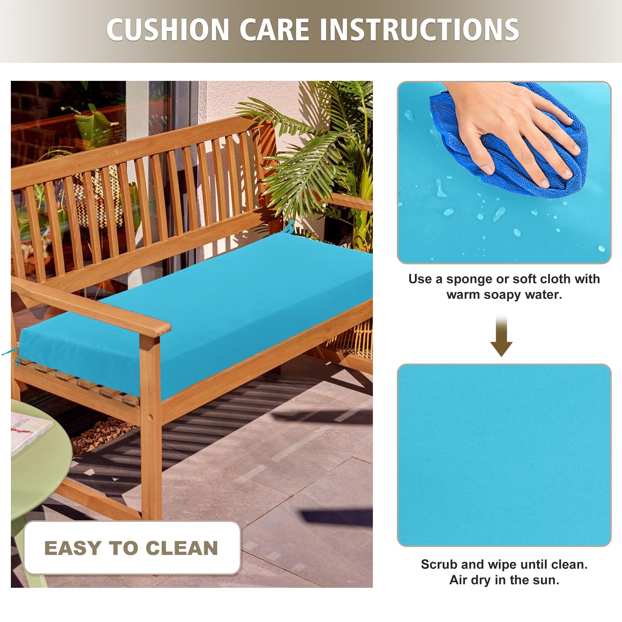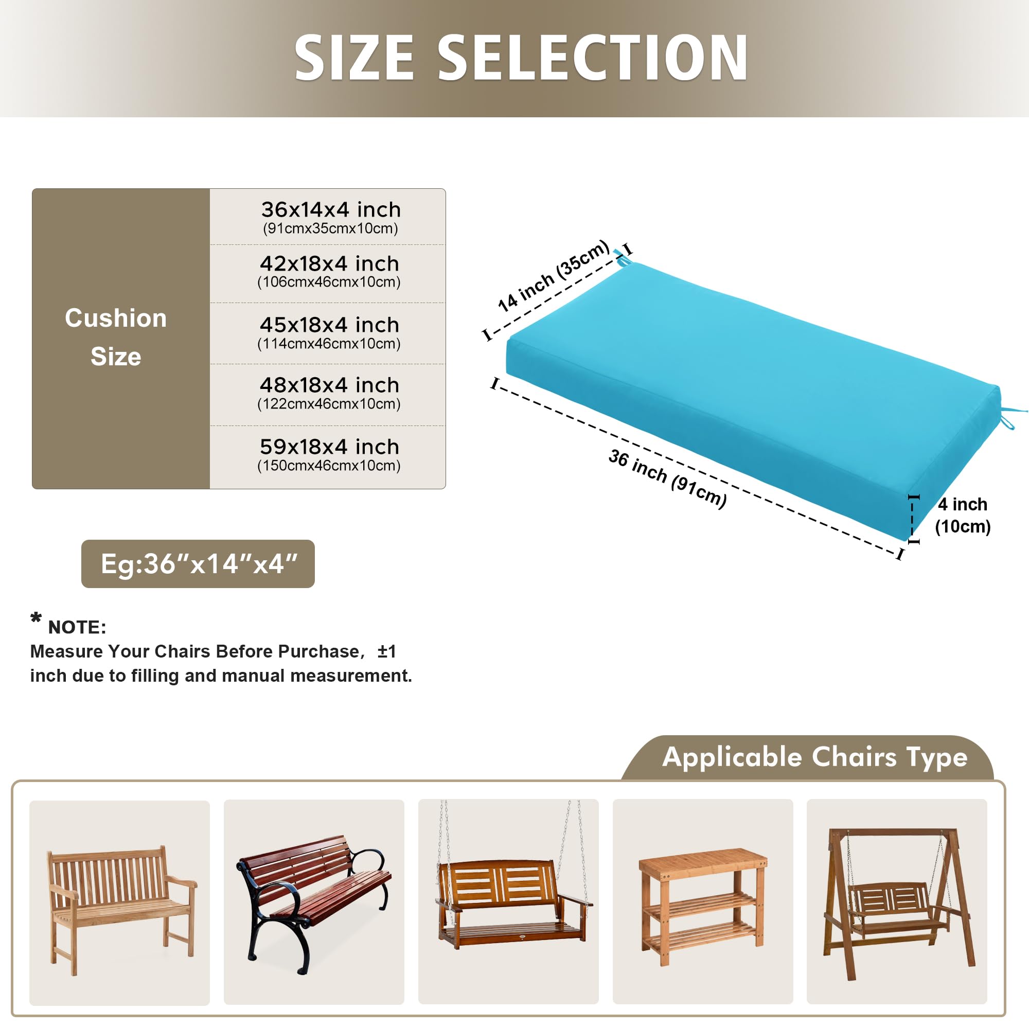 【Enhanced Comfort & Support】: Filled with high-resilience shredded foam, our outdoor bench cushions provide optimal comfort, reducing pressure on your hips. Available in multiple sizes (36"x14", 42"x18", 45"x18", 48"x18", 59"x18"), they offer a plush, supportive seating experience for patio benches, loveseats, entryway benches, piano benches, or porch swings.