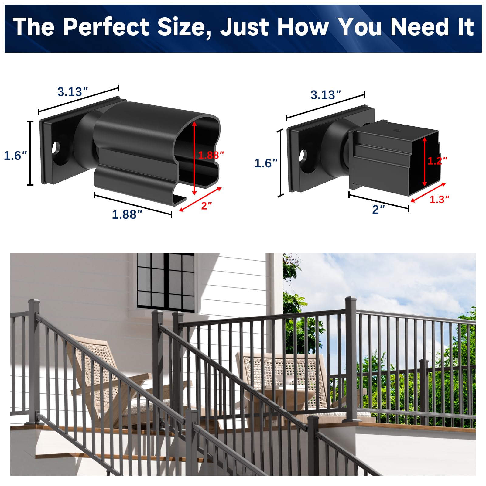 High-Quality Aluminum Construction: Crafted from 6063 aluminum with a black AAMA 2604 powder-coated finish, this railing bracket resists rust and wear, ensuring reliable performance in outdoor environments.