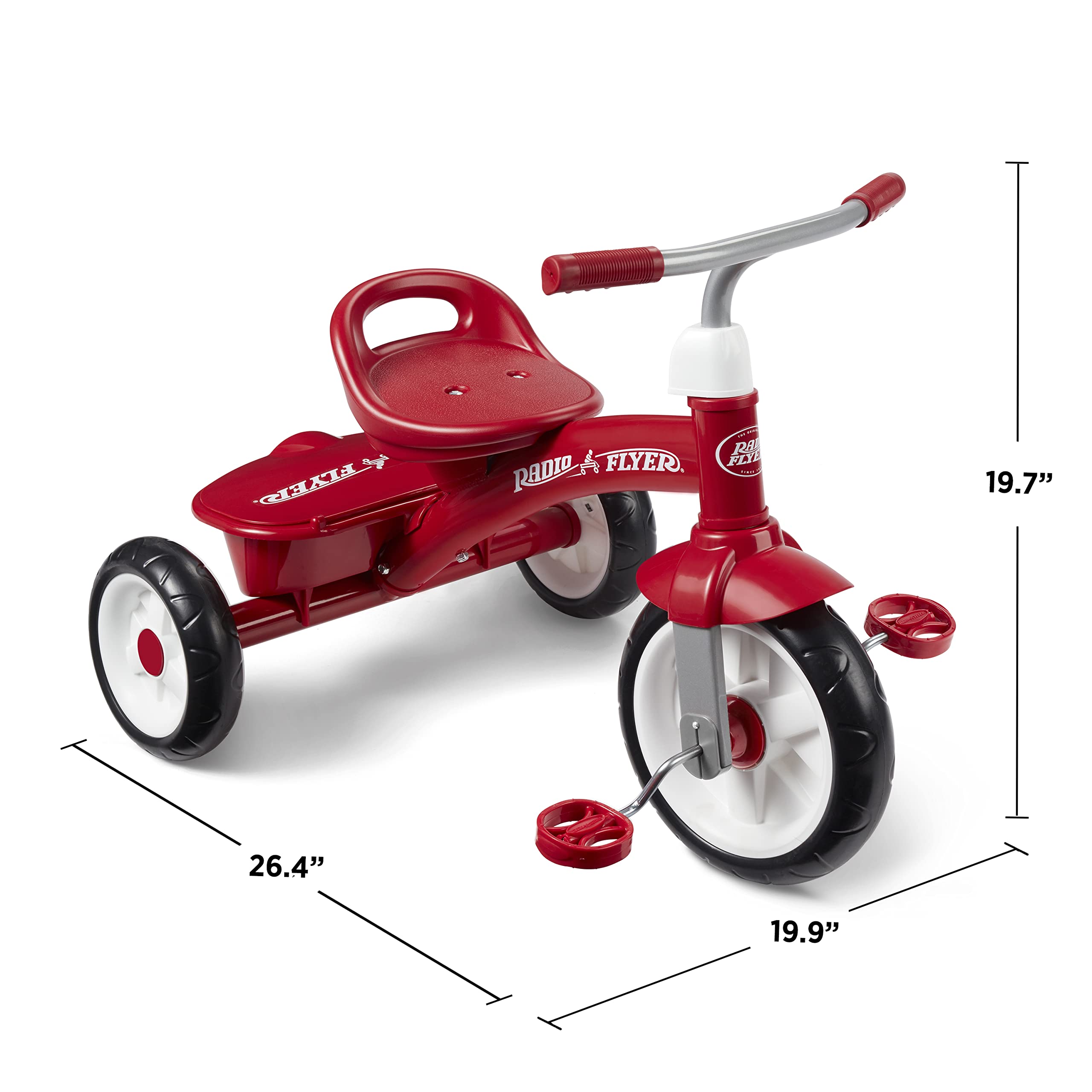 The Red Rider Trike offers convenience, comfort, and fun! These toddler girl toys feature steel construction, comfort grip handlebars, and quiet ride wheels. The adjustable bicycle seat ensures your child will enjoy the balance bike for years. Plus, it comes with a fun covered storage bin. Whether riding on your local sidewalks, cruising the park pathways, or exploring the backyard, this tricycle is designed for everyday family fun in all environments. If you’re looking for 3 year old girl gifts, outdoor toys for toddlers 1-3, 5 year old girl birthday gift ideas, a 2 year old boy birthday gift, outside toys for toddlers 1-3, 1 year old toys, or a tricycle for toddlers 1-3, look no further! It's ideal for a toddler scooter, toys for 3 year old girl, toddler toys 1-2, 2 year old toys, toys for 1 + year old boy, outdoor toddler toys, and toys for 2 year old boy. This toy is recommended for a 3 year old girl birthday gift, balance bike 2 year old, outdoor toys for toddlers 3-5, gifts for 4 year old girl, toys for 2 year old girl, and gifts for 2 year old girls. The best learning toys for 2 year olds, ride on toys for kids 4-8, toys for 2 + year old boy, 2 year old boy toys, ride on toys for toddlers 1-3 boys, and toys for 2 + year old girl. For additional questions, support, or concerns, please contact our customer service team at https://www .radioflyer .com/customer-service/ or 1 (800) 621-7613.