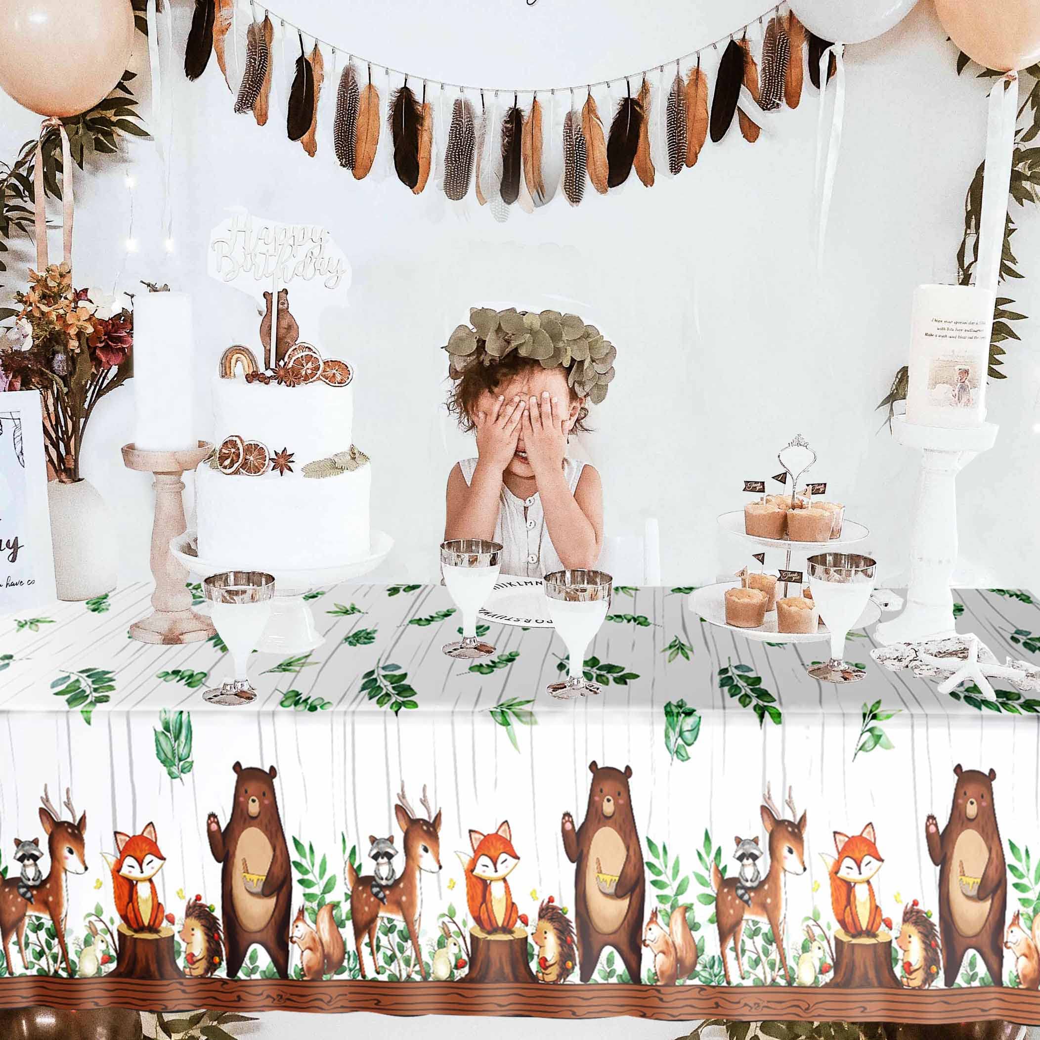 Tablecloth or Backdrop - Baby woodland animal table covers can not only served as table decor for baby shower birthday party, but also as decorative backdrop for kitchen, dining room, picnic, camping, or playground.