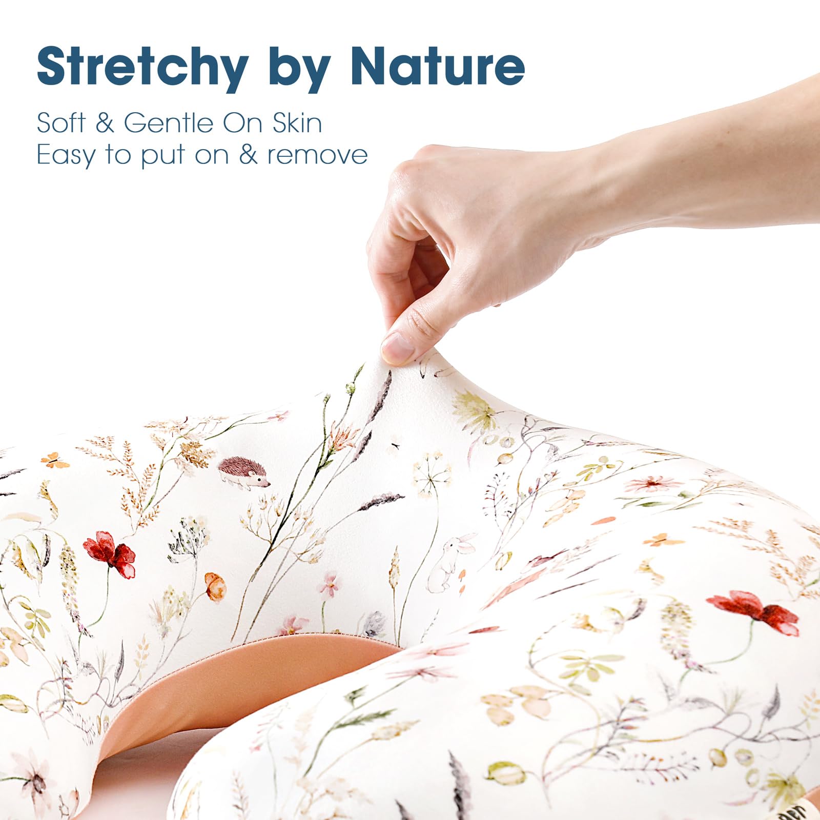 EASY INSTALL AND CLEAN: Thanks to the covered zipper, our convenient nursing pillow cover is quick and easy to slip on and off of nursing pillows, and they can be cleaned easily and effortlessly, because it’s machine washable and won't fade after hundreds of washing, which is good difference from cotton material.