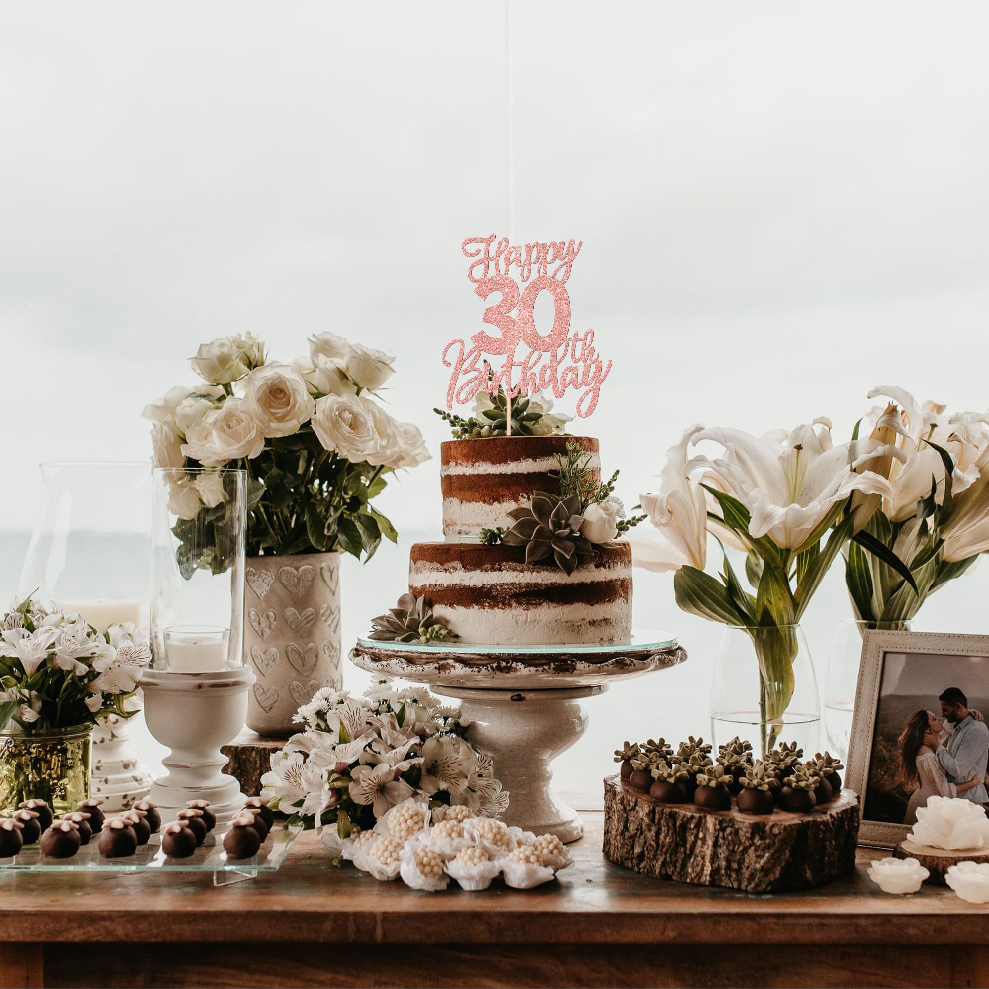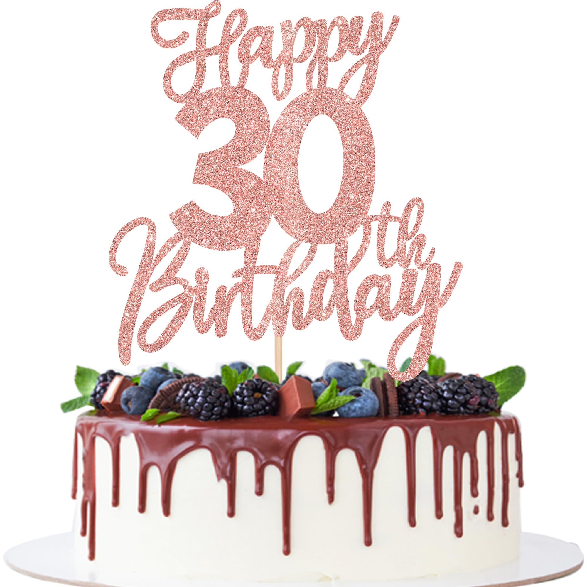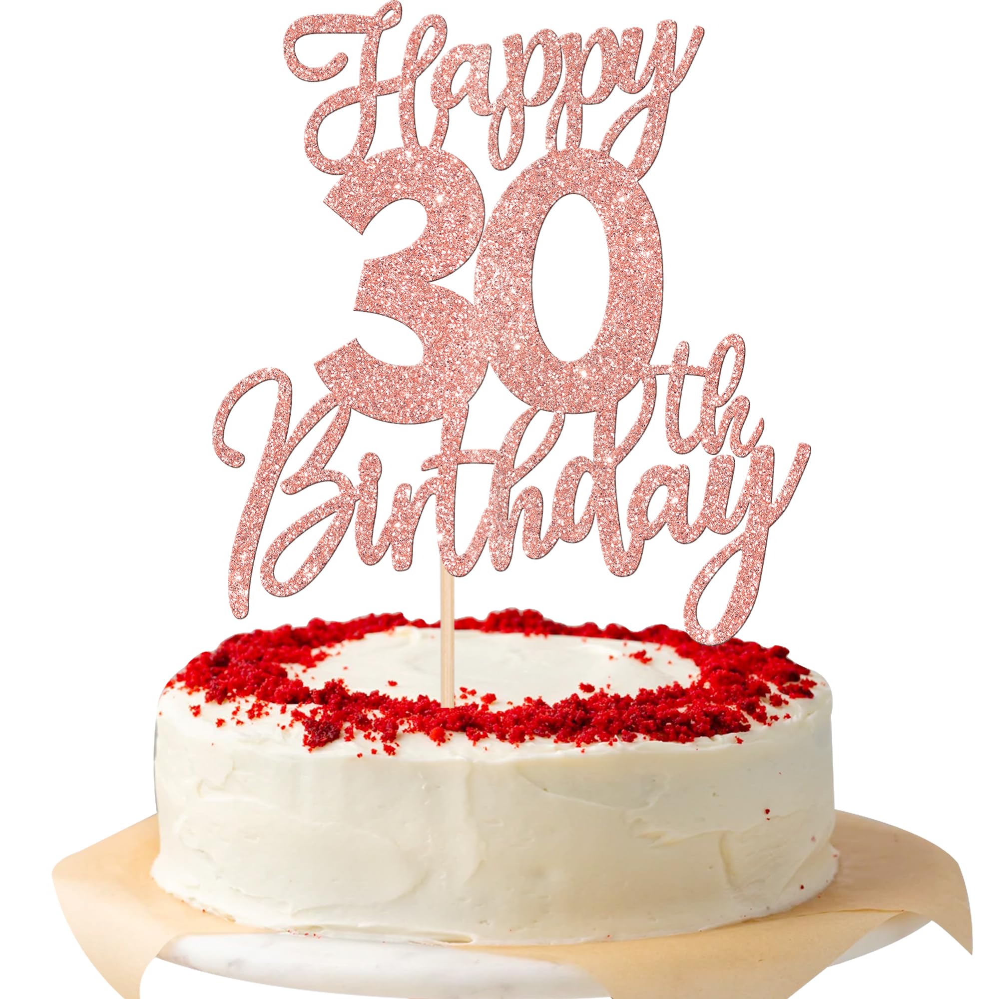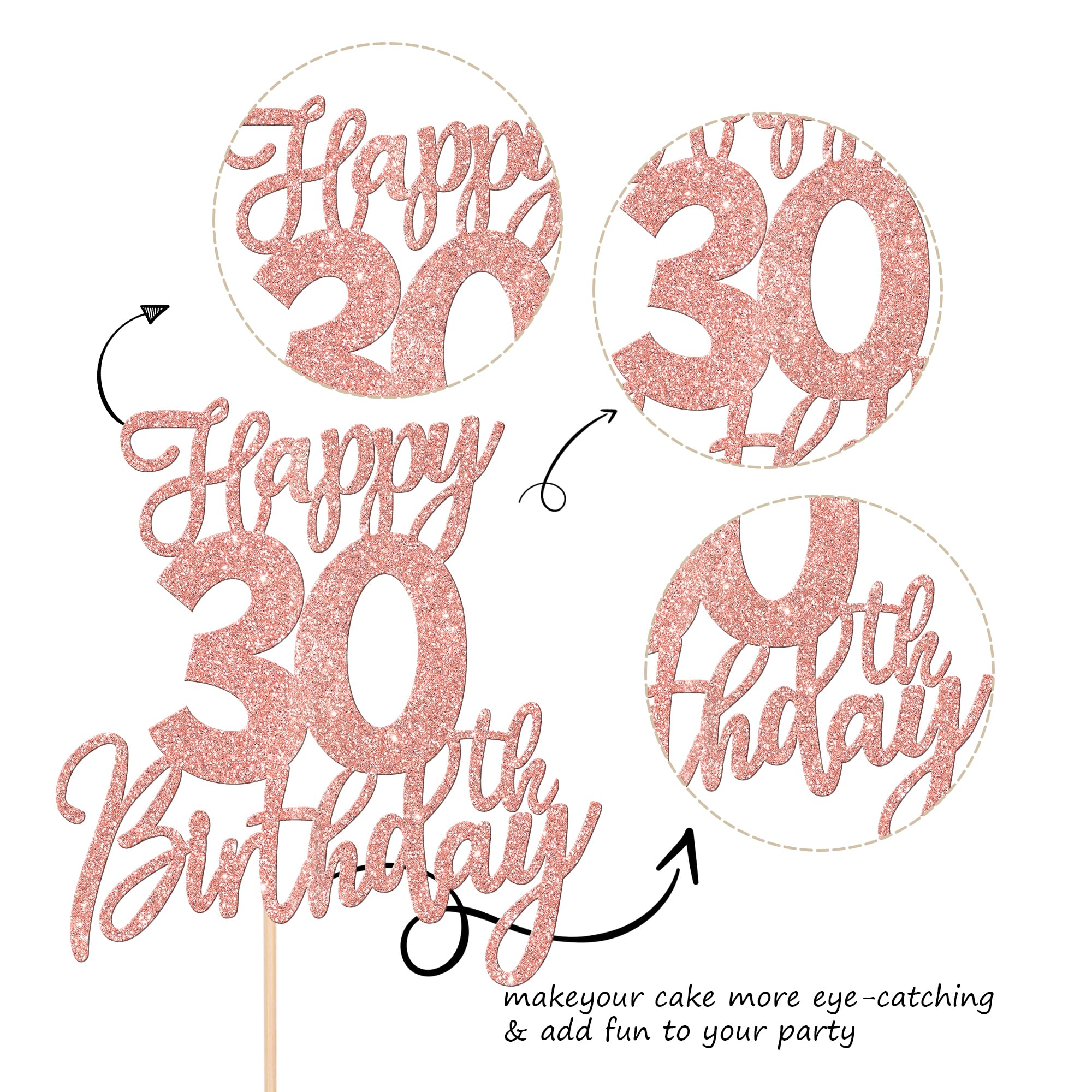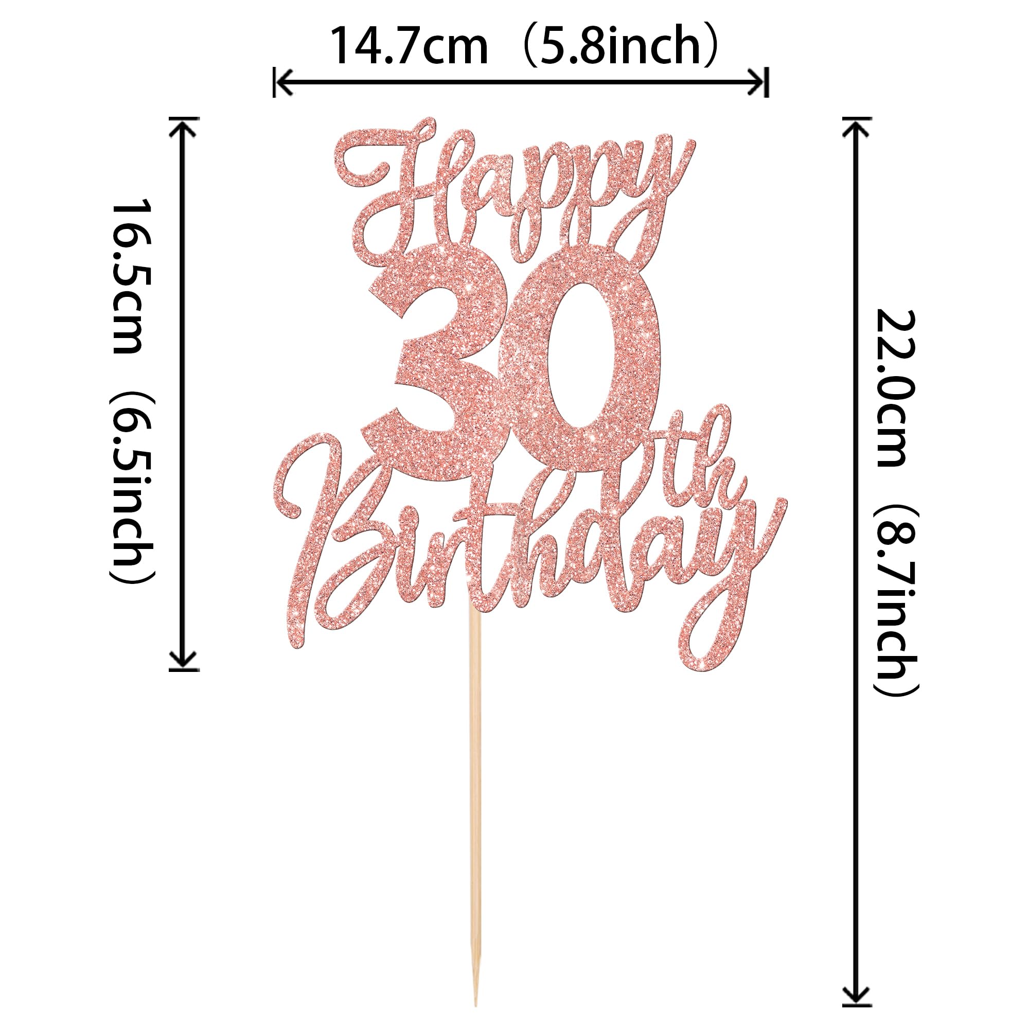 Happy 30th Birthday Cake Topper for Happy 30th Birthday Anniversary Theme Party Cake Decorations Supplies Perfect for happy 30th birthday theme party, cheers to 30 years party,30th anniversary theme party cake decorations supplies. Pack of 1 pcs. The size is W 6 inch * H 8 inch / W 15 cm * H 21 cm ( with stick ) Made of high quality paper card stock and food grade sticks,thick and sturdy. This cake topper is one side glitter, another side is white, and this is intended for decoration only, please do not put them in oven or microwave. If the item you received has any defects, please contact us for refund.we will deal with it within 24 hours.