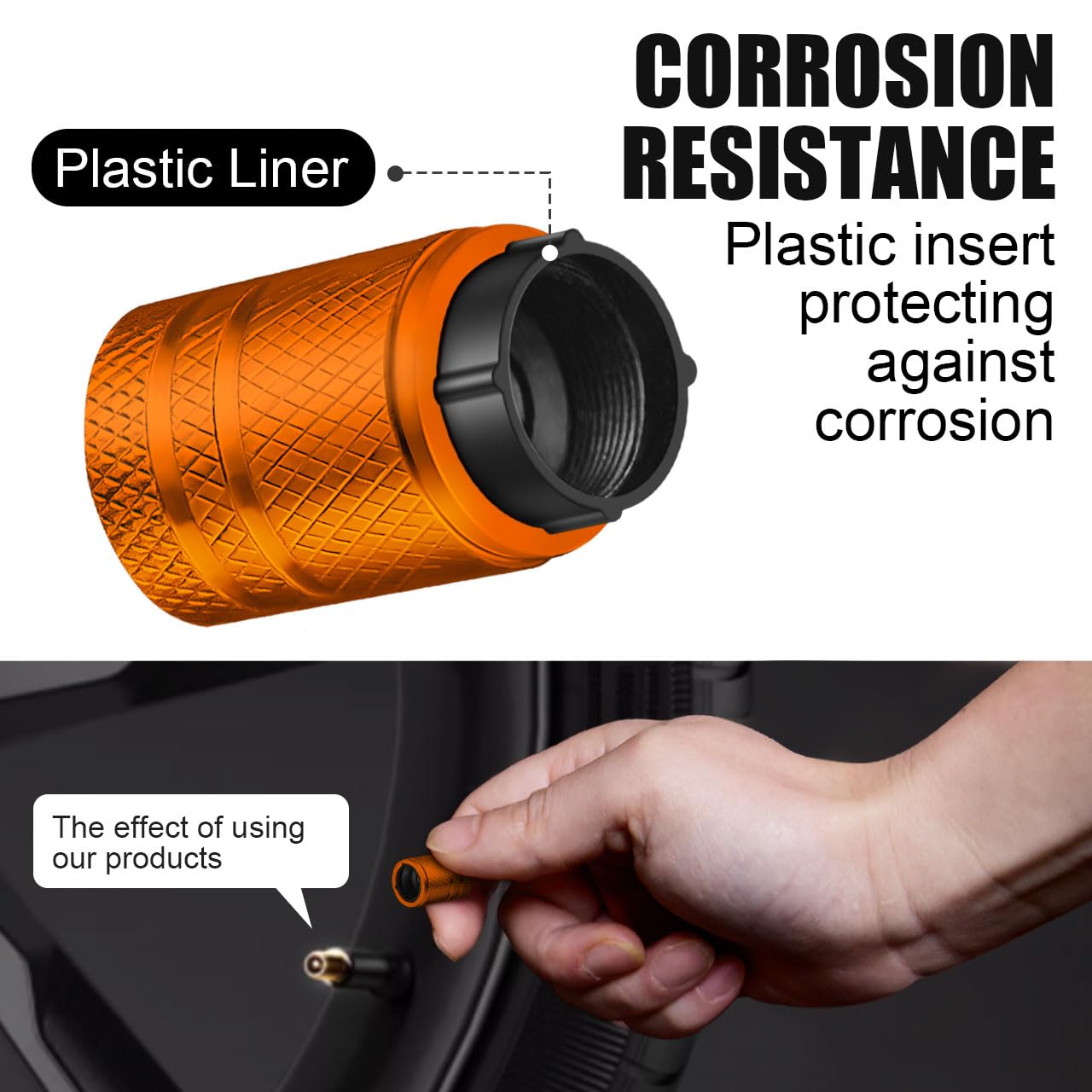 CORROSION RESISTANCE - Our tire valve stem caps feature a metal shell and plastic insert, protecting against corrosion, especially in wet and cold conditions.