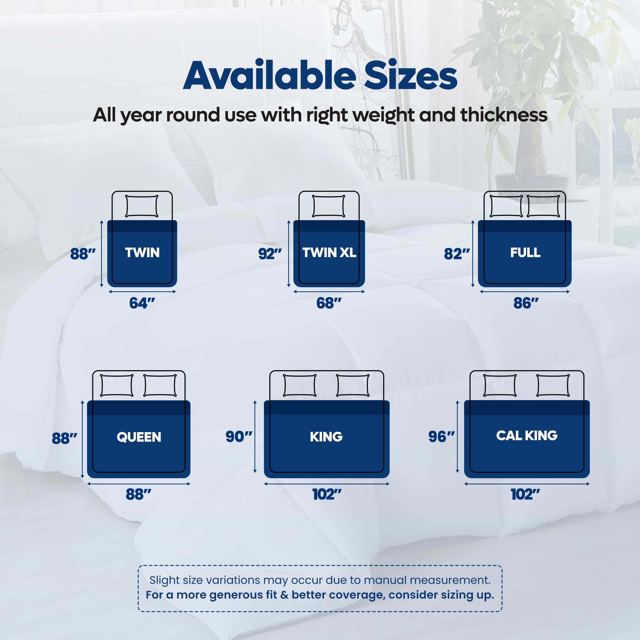 BOX STYLE STITCHING - Crisp looking comforter featuring Piped Edges with an elegant Box Style Stitching Pattern that not only looks beautiful, but prevents the fill from shifting during the night, ensuring a comfortable sleep