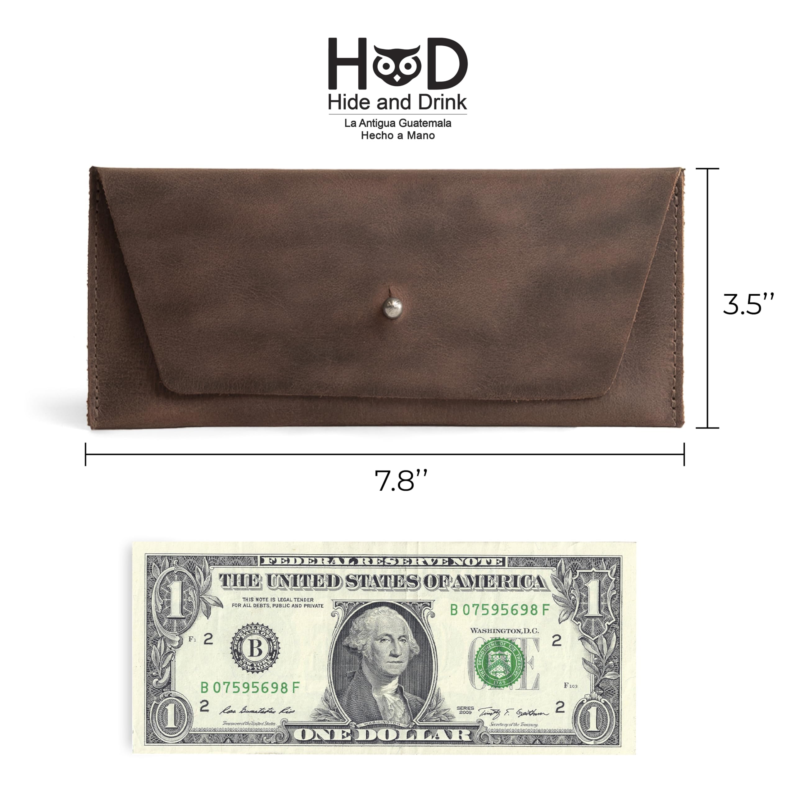 Description Hide & Drink's exquisite products are handmade by expert artisans using beautiful Full Grain Leather, giving you a product that will last you a lifetime. All Hide & Drink leather products are handmade from rustic, durable, Full Grain Leather. Our Full Grain Leather comes from the top layer of the hide and has all the natural full grain characteristics of the hide...hence the name. It's the best leather you can buy and the only leather that we use. The flesh side of the soft leather is first stained with natural drab tone and finished with our proprietary beeswax conditioner. Our unique treatment helps the leather to retain its shape without the aid of synthetic stabilizers, offering a natural and durable look. Product Features Durable and long-lasting thick, Full Grain Leather Hand cut and finely hand stitched Makes an excellent gift for friends and family Includes a 101 Year Warranty, so if this product breaks within your lifetime, then we'll send you a replacement for free Hide & Drink is a vertically integrated community-driven brand dedicated to support the local community in La Antigua, Guatemala. Our product is designed, sourced, and manufactured by local artisans for the benefit of residents. Our wages are fair and we emphasize for-profit development through entrepreneurial education. In addition to creating jobs through the manufacturing and sale of our products, we contribute 5% of our Gross Profits to outstanding non-profit organizations in Guatemala.