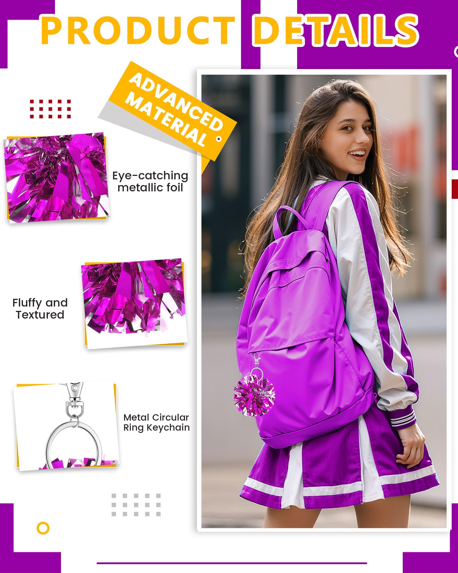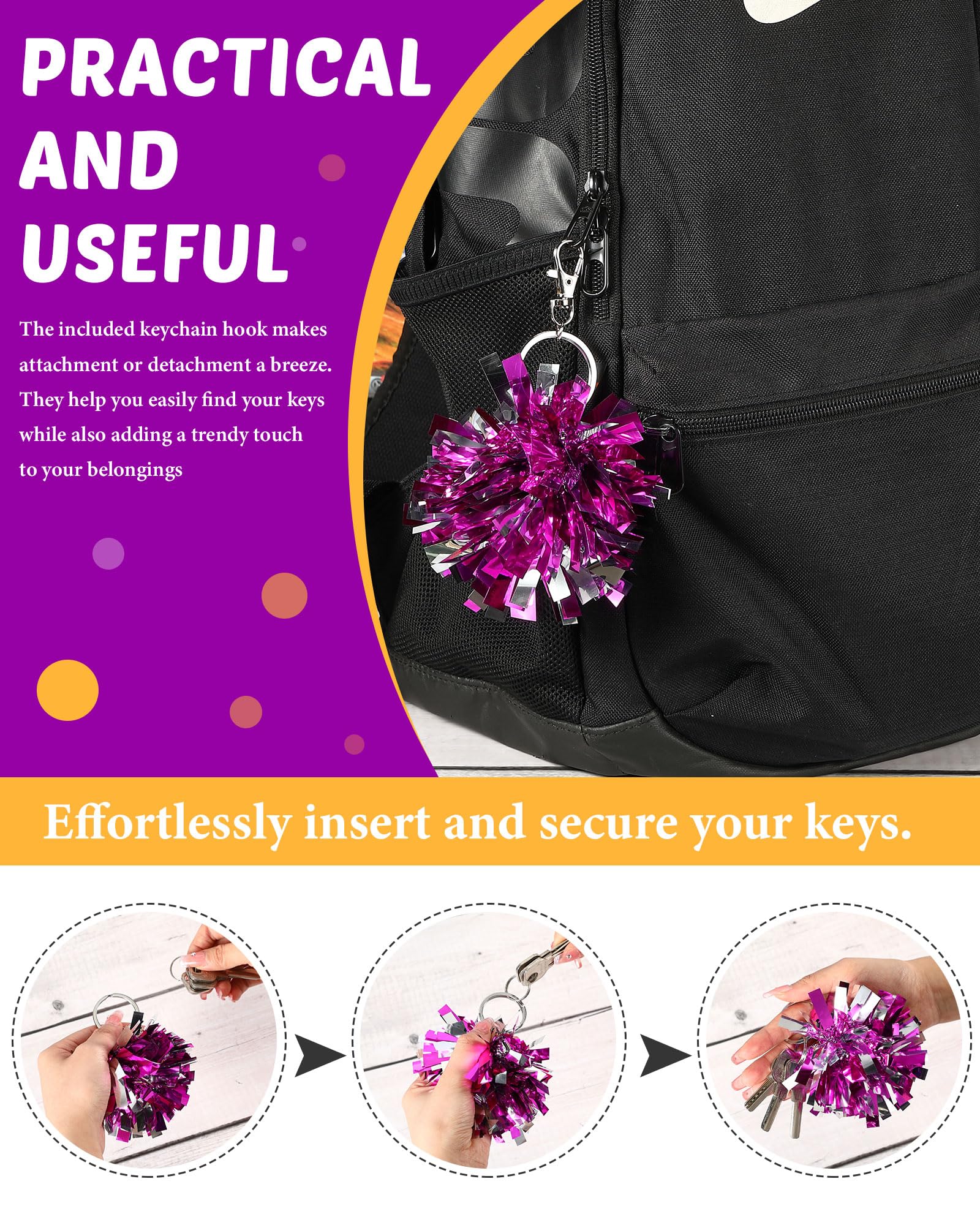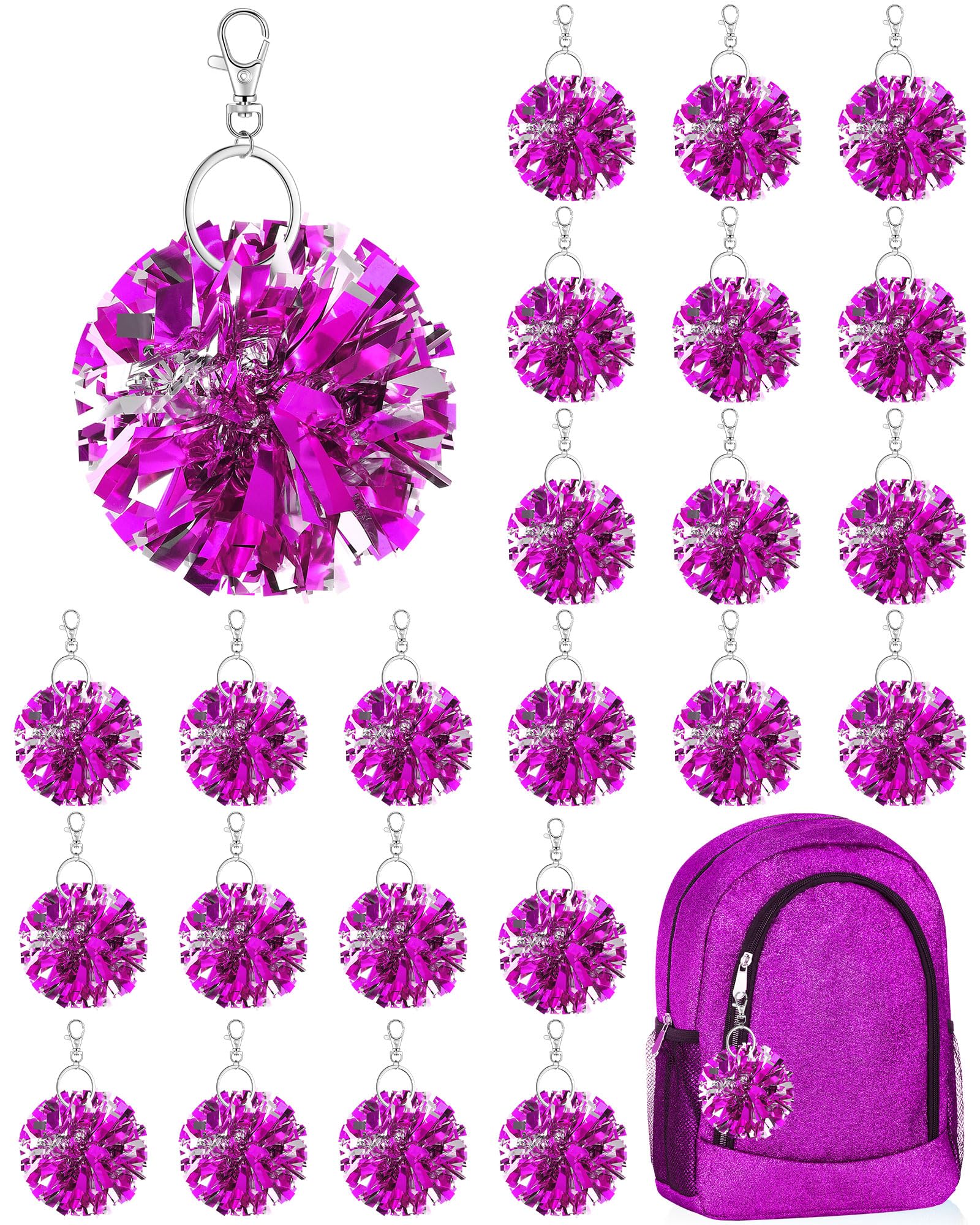 Sturdy Material and Vibrant Colors: the pom pom key chains are made of quality plastic and metal, ensuring a resilient and enduring build; The shimmering metallic foil in impressive rose red catches the eye easily, boosting the cheerleading spirit and embodying an emblem of your unflinching support to your team