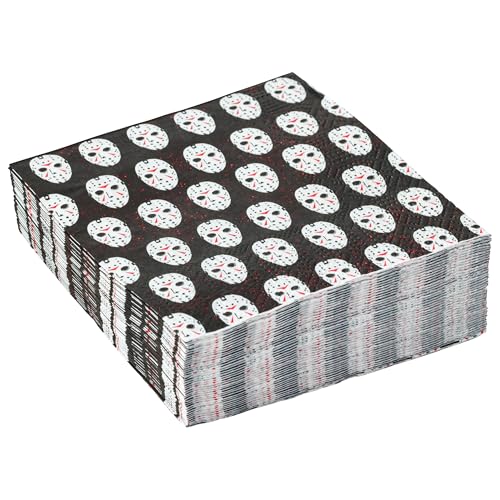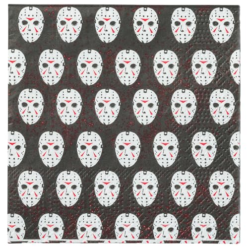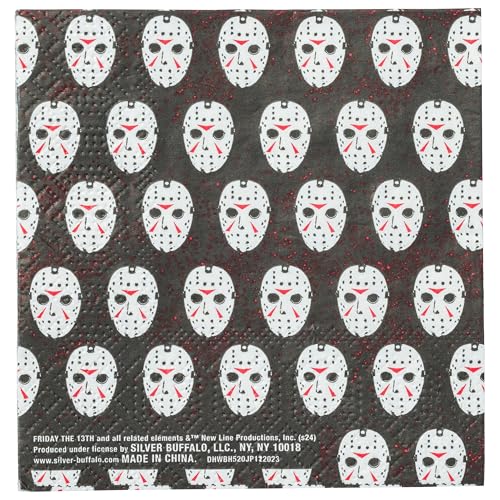 Throw a killer party complete with these spooky napkins! Themed napkins are dark grey and feature a pattern of Jason Voorhees’s spinechilling mask. SINGLE USE ONLY. Please dispose of properly after use. Each napkin pack comes with 40 napkins; perfect for large and small gatherings. Measuring 10” x 10”, these napkins are great to rest drinks on, set tables, or to add flair to your setup. Napkins are ideal for birthday parties, Halloween events, or casual gatherings. Spice up your party while keeping your space clean! Take a dive into the fictional world with Silver Buffalo! Silver Buffalo provides fans with official merchandise from their favorite characters. Working alongside licensors and brands, we create unique and imaginative products which are designed with great care and detail. Silver Buffalo aims to connect fans to their favorite cartoon characters, superheroes, movies, tv-series, and more. Celebrate your fandom!