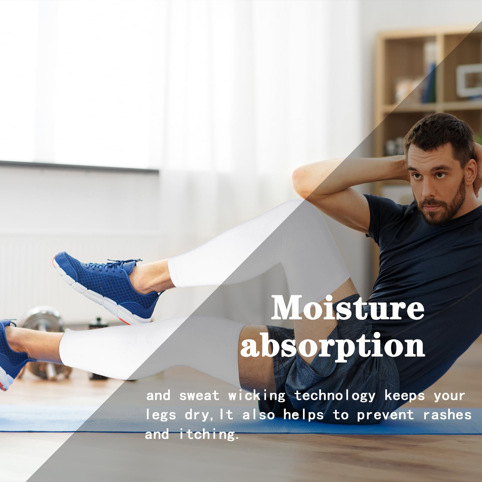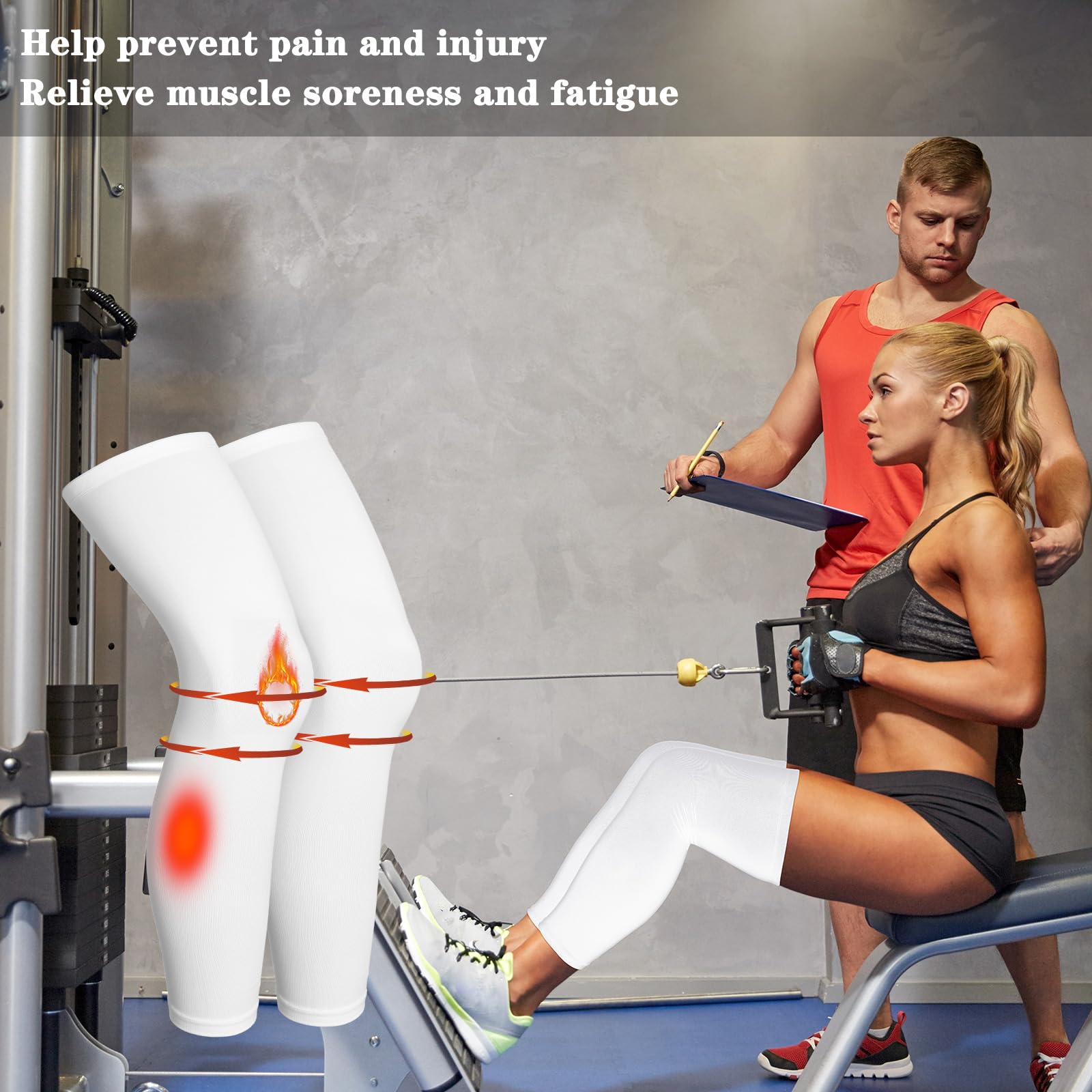 Effective function: the built in silicone can keep the position well, so you can wear for a long time without falling off; The compression design of nonslip leg sleeve can increase blood flow and circulation, helping speed up muscle recovery time, reducing leg shaking when exercising, and effectively relieving muscle pain after exercise