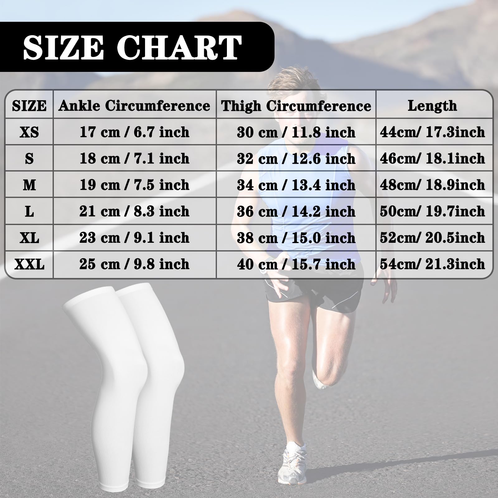 Practical 2 pair of outdoor sport sleeve: compression full leg sleeves are designed to help you get the support you need to be comfortable day and night, helping you prevent pain such as leg pain, tibial splints, leg pinching, muscle soreness, fatigue, swelling, varicose veins and spider veins, etc, Note: please check the size list carefully before buying; The leg sleeve material is elastic; If you want more compress, you can buy a smaller size