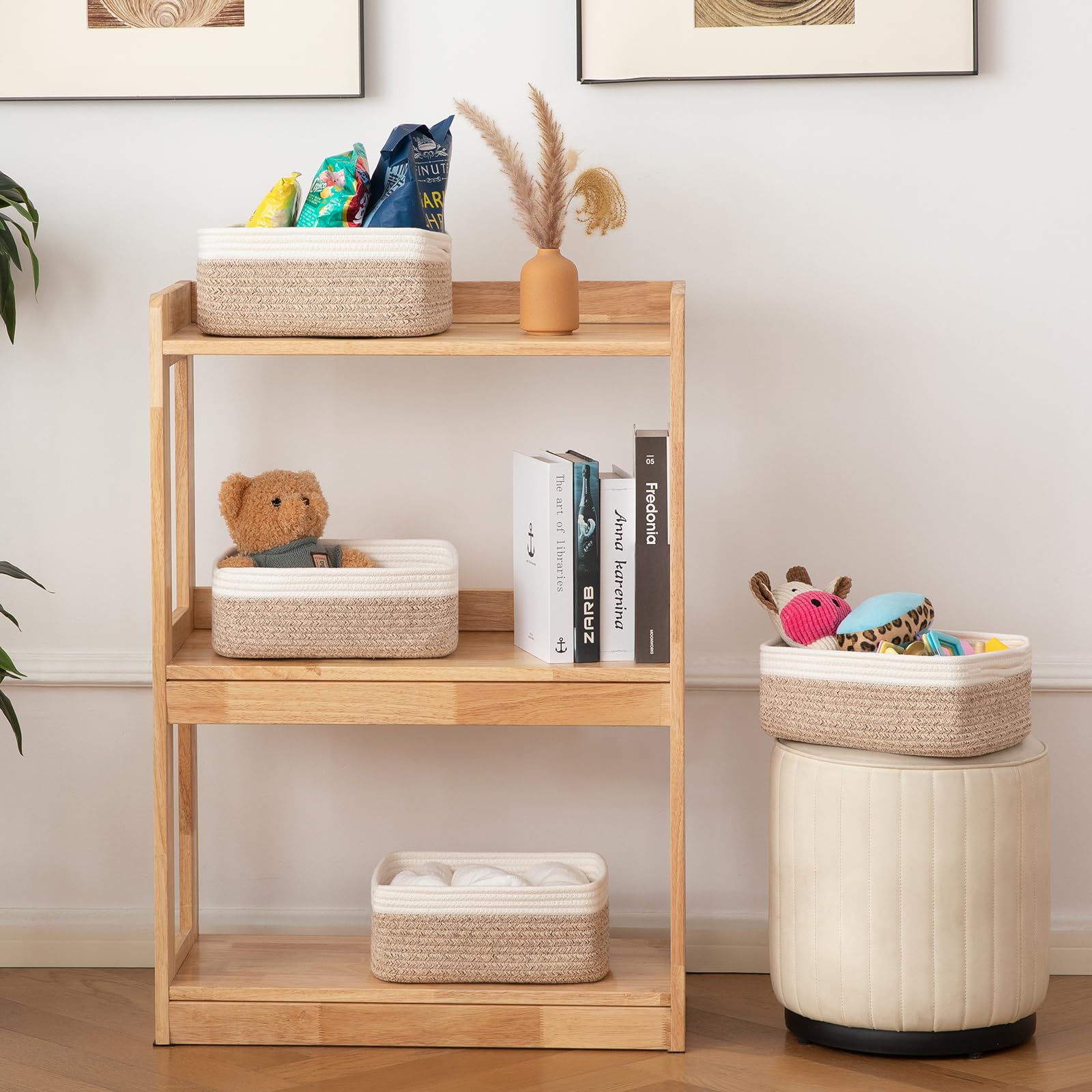 Soft and Firm Storage Baskets for Organizing:OIAHOMY woven baskets for storage are made of high-quality natural cotton, chemical free and safe for kids and pets. It will not scratch your furniture and floor