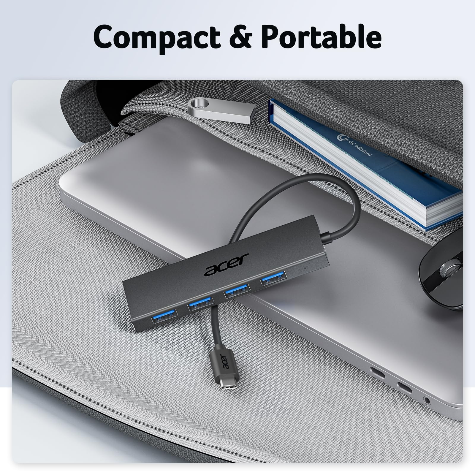 【4 Ports USB 3.0 Hub】Acer USB C Hub offers a versatile solution, expanding your device with four additional USB 3.0 ports. Perfect for connecting USB peripherals like flash drives, mice, keyboards, and printers.