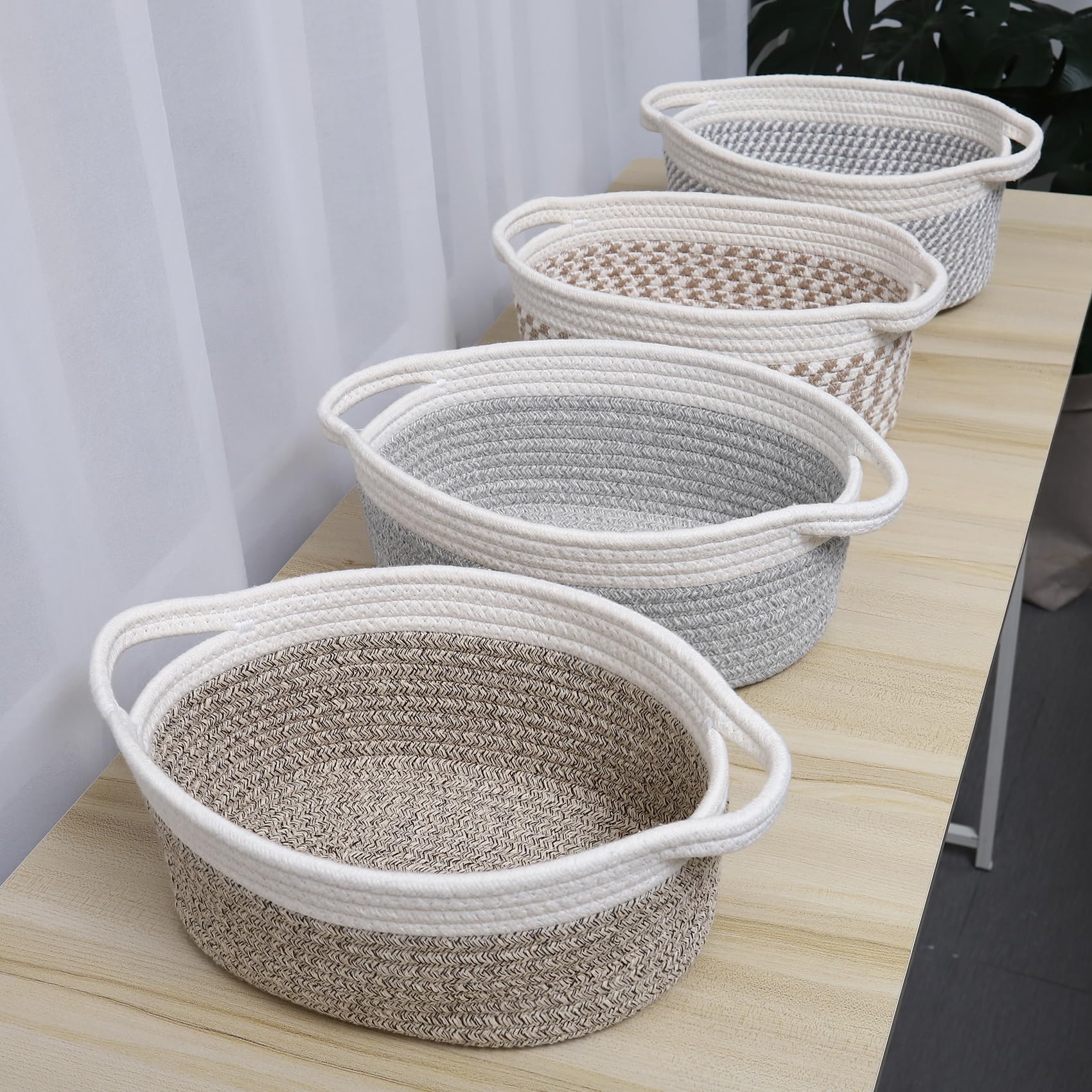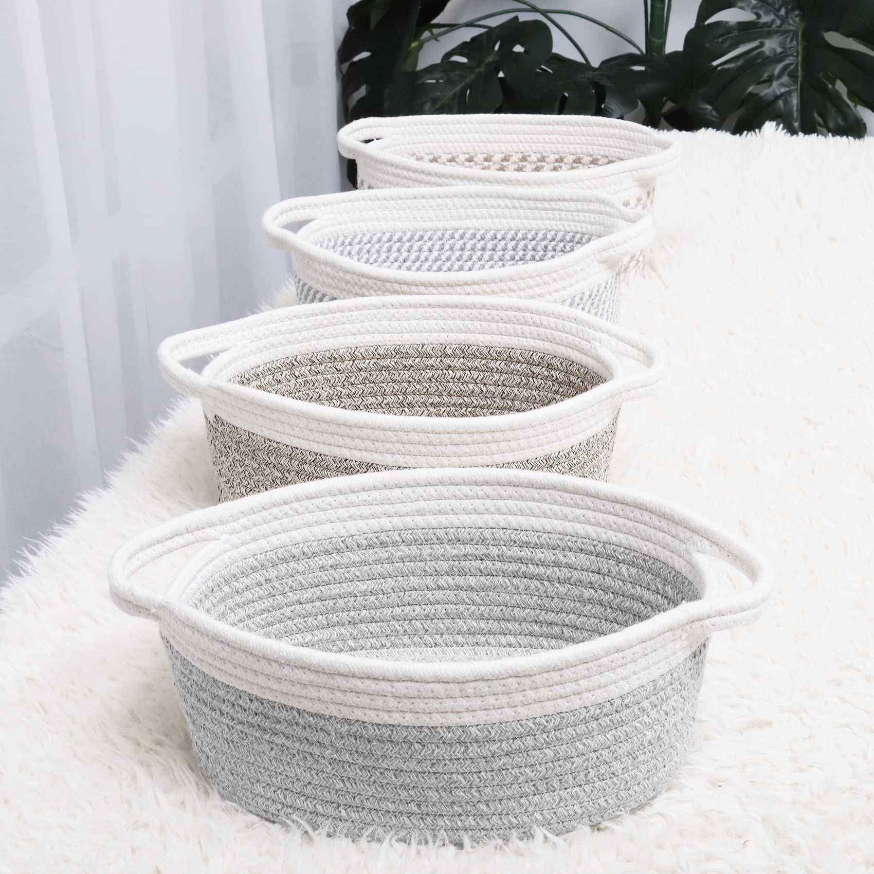 100% cotton material, small rope basket, natural, chemical-free, skin-friendly, woven basket safe for baby and pets, scratch-free to floors or walls