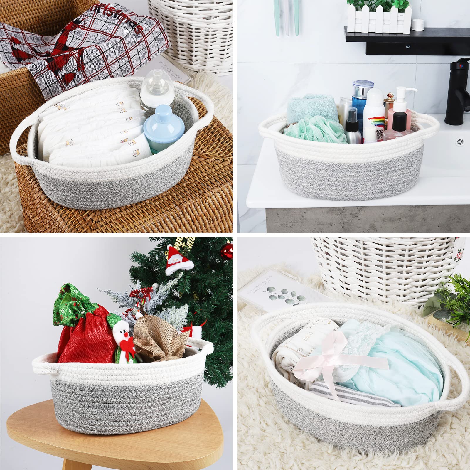 Small baskets for organizing, keep spa essential, fruits, remote control, towel, diaper, blanket, toy, nursery necessaries, make-ups organized in order. Even can be used as dog cat basket