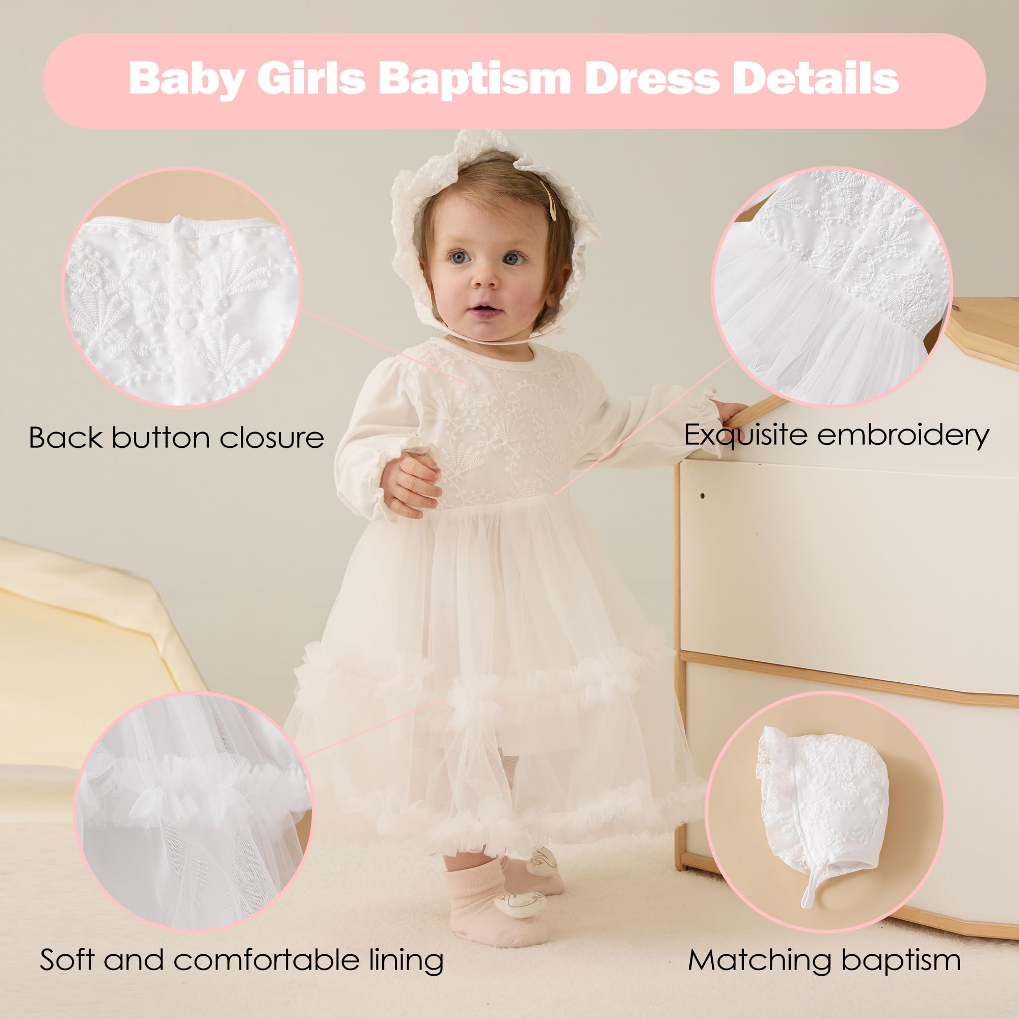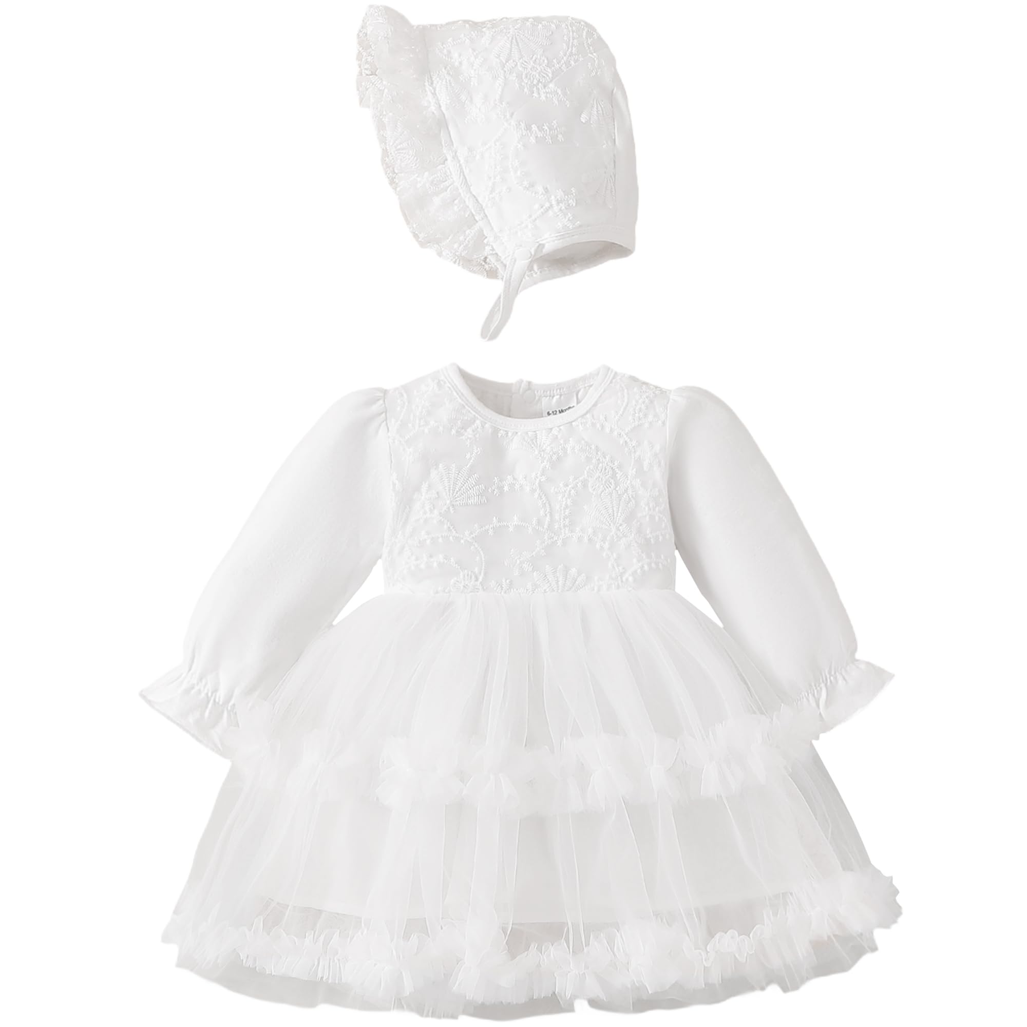 Baptism Dress Baby Package: Includes 1pc cute christening dress with 1pc white baptism hat,quality stands the test of repeated wears and washes.It will be a nice baptism gift, your baby will get many compliments on it.