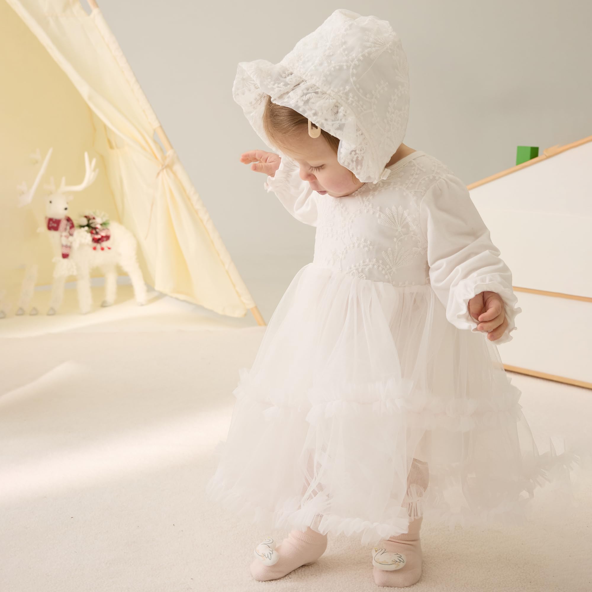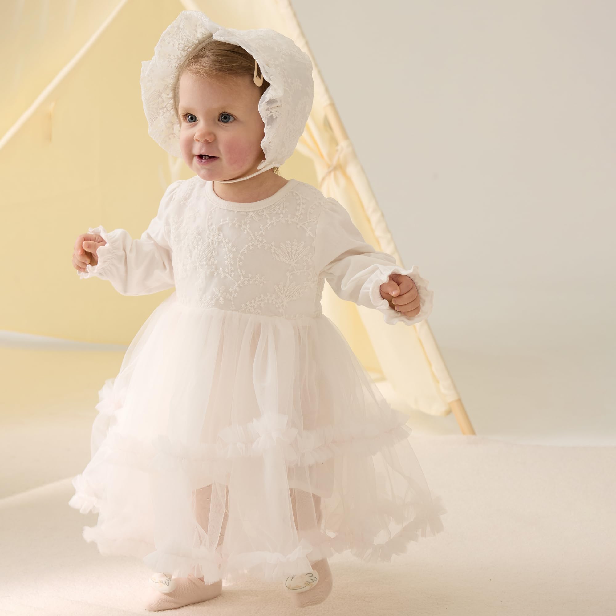 Baby Baptism Dress Material: Baptism dresses for baby girls is cotton fabric,breathable and soft,safe and gentle,against even the most sensitive skin.So our baby dedication outfits girl is comfortable for baby girls to wear and play.