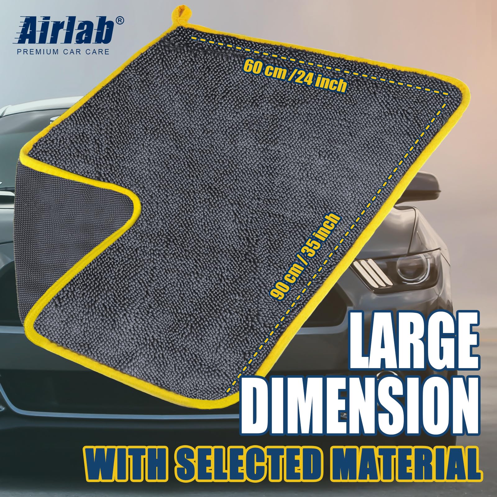 Huge Size: Our 24" x 35" car microfiber towel is large enough to dry an entire car in just one pass and cuts regular drying time in half. Perfect for SUVs, RVs, trucks, boats, etc.