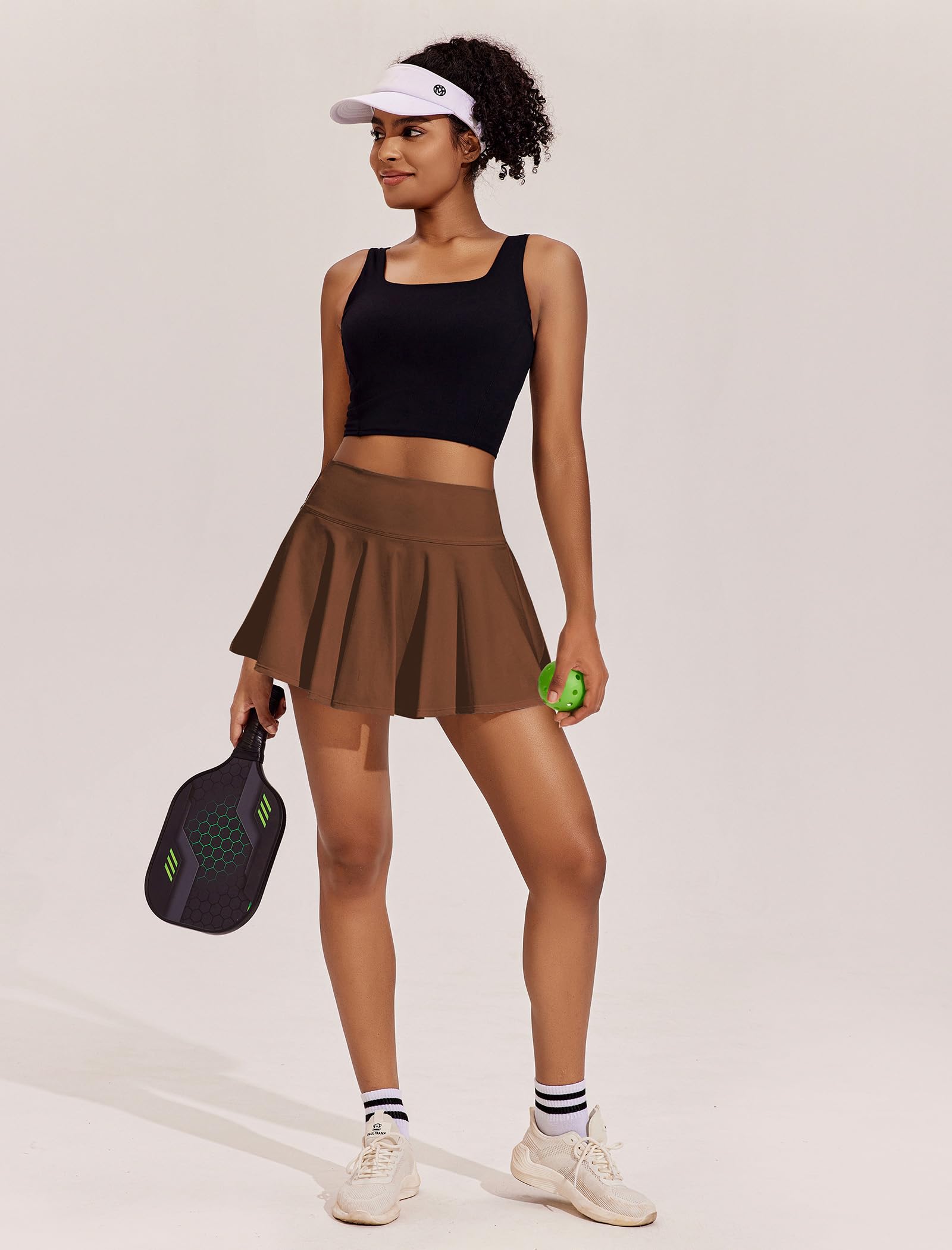 Stylish Pleat Design: The 14" workout skirt enhances your sporty-chic with cute flowy pleats, while making you move freely. Please consider your height and preferred length when ordering.