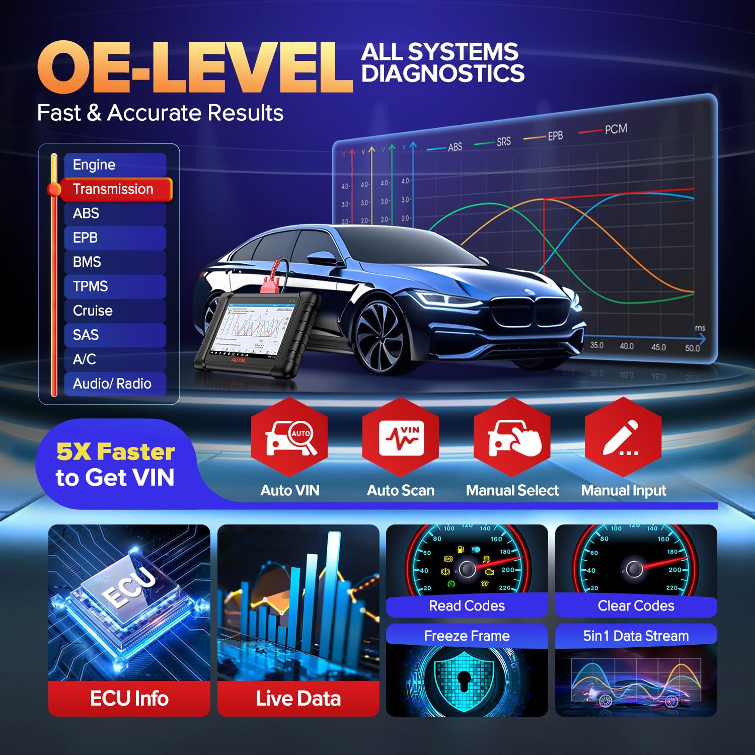 🚀【5X Faster Speed with Next-Level Hardware】Autel MaxiCheck MX808S bidirectional scanner is the m.ost competitive automotive diagnostic tool to date. With Rockchip RK3566 4-core CPU, 4GB RAM and 64GB ROM, built based on Android 11 platform, Autel MX808S provides 5X faster service speed than the old MK808/ MX808 and any other brand diagnostic tools which are built on the out-dated Android 4, no more slow and delayed feedback, it's time to update your garage with the 2025 new.est MX808S!