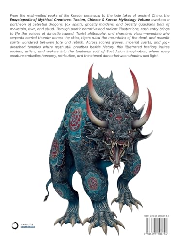 Unveil the Mythology of China and Korea! Journey beyond mist-shrouded mountains, sacred rivers, and celestial palaces into the living heart of East Asian legend with the Encyclopedia of Mythical Creatures: Taoism, Chinese & Korean Mythology Volume. This exquisitely illustrated bestiary reveals a world where dragons command the storm winds, fox spirits weave illusion and desire, ghost maidens walk beneath the moon, and divine beasts guard the harmony between heaven, earth, and the underworld. Through radiant storytelling and mesmerizing art, this volume unveils the timeless balance between beauty and terror, virtue and vengeance, serenity and fire. Discover Legendary Beings and Celestial Wonders: From the benevolent Qilin and the thunder-summoning Yinglong to the vengeful Gumiho and the haunting Cheonyeo Gwishin, each entry immerses readers in the myths, rituals, and philosophy that shaped the spiritual landscapes of China and Korea. Explore the origins of mountain gods and river dragons, the foxes who stole hearts, and the restless souls who wandered between worlds. Rooted in Taoist cosmology, Buddhist symbolism, and ancient shamanic tradition, these tales breathe with the pulse of civilizations that saw the divine reflected in every creature and storm. Stunning Artwork for Every Creature: Each being is reborn through luminous illustrations, capturing the majesty, mystery, and emotion of East Asia’s mythic imagination. From the moonlit feathers of heavenly birds to the burning eyes of spectral tigers and dragon-guarded seas, every page glows with color and spirit—an artistic celebration of harmony, duality, and eternal transformation. Perfect for Myth Enthusiasts, Historians, and Fantasy Lovers: Whether you are exploring the mountain spirits that protect the land, the celestial guardians of the four directions, or the tricksters and phantoms that walk unseen among the living, this volume offers a rich, immersive journey into the soul of East Asian myth. Inside this book, you’ll find: In-depth profiles of legendary beings: Qilin, Fenghuang, Baihu, Gumiho, Cheonyeo Gwishin, Bulgasari, Yong, Jangsanbeom, Jeoseung Saja, Baridegi, and many more. Cultural insights into how Chinese and Korean myths shaped philosophy, art, spiritual belief, and the rhythm of daily life. Breathtaking watercolor illustrations that illuminate the power, grace, and symbolism of each mythic creature. Ideal for readers fascinated by East Asian Mythology, Taoism, Korean Shamanism, Celestial Beasts, Ghost Folklore, Ancient Civilizations, Art History, Illustrated Bestiaries, and Fantasy Worldbuilding.