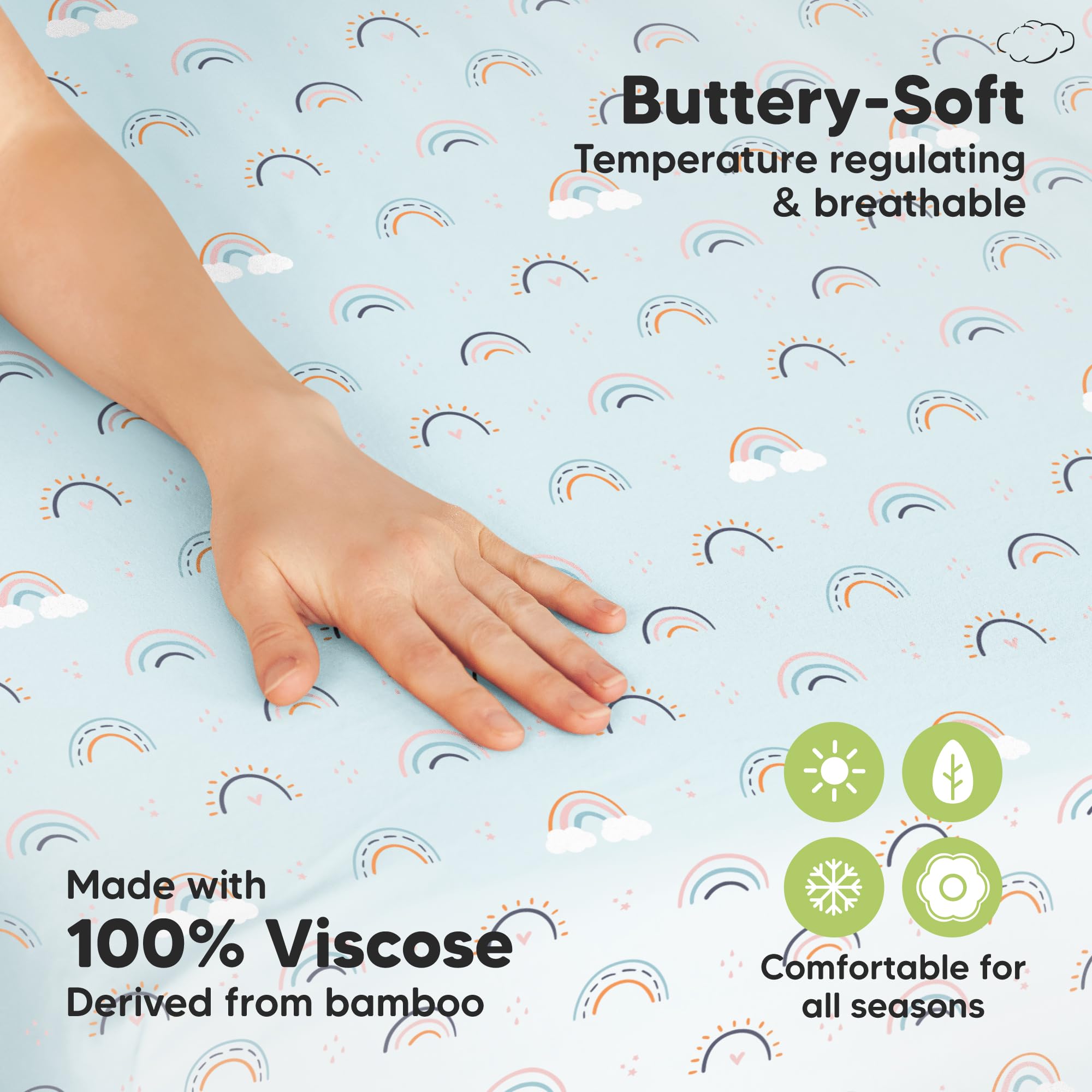 Temperature-regulating - Made of 100% viscose derived from bamboo, the Isla Mini Crib Mattress Sheet is highly breathable and suitable for all seasons, providing maximum comfort during play and nap time.