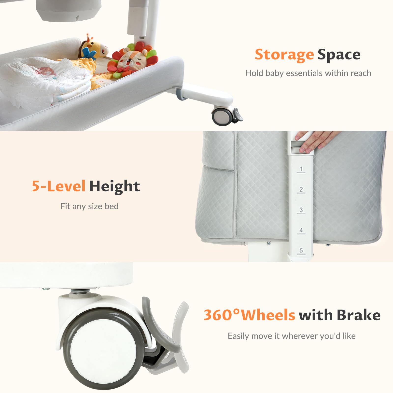 Portability - With 4 universal wheels, you want to move the bassinet between rooms. And the wheels can be locked for added safety.